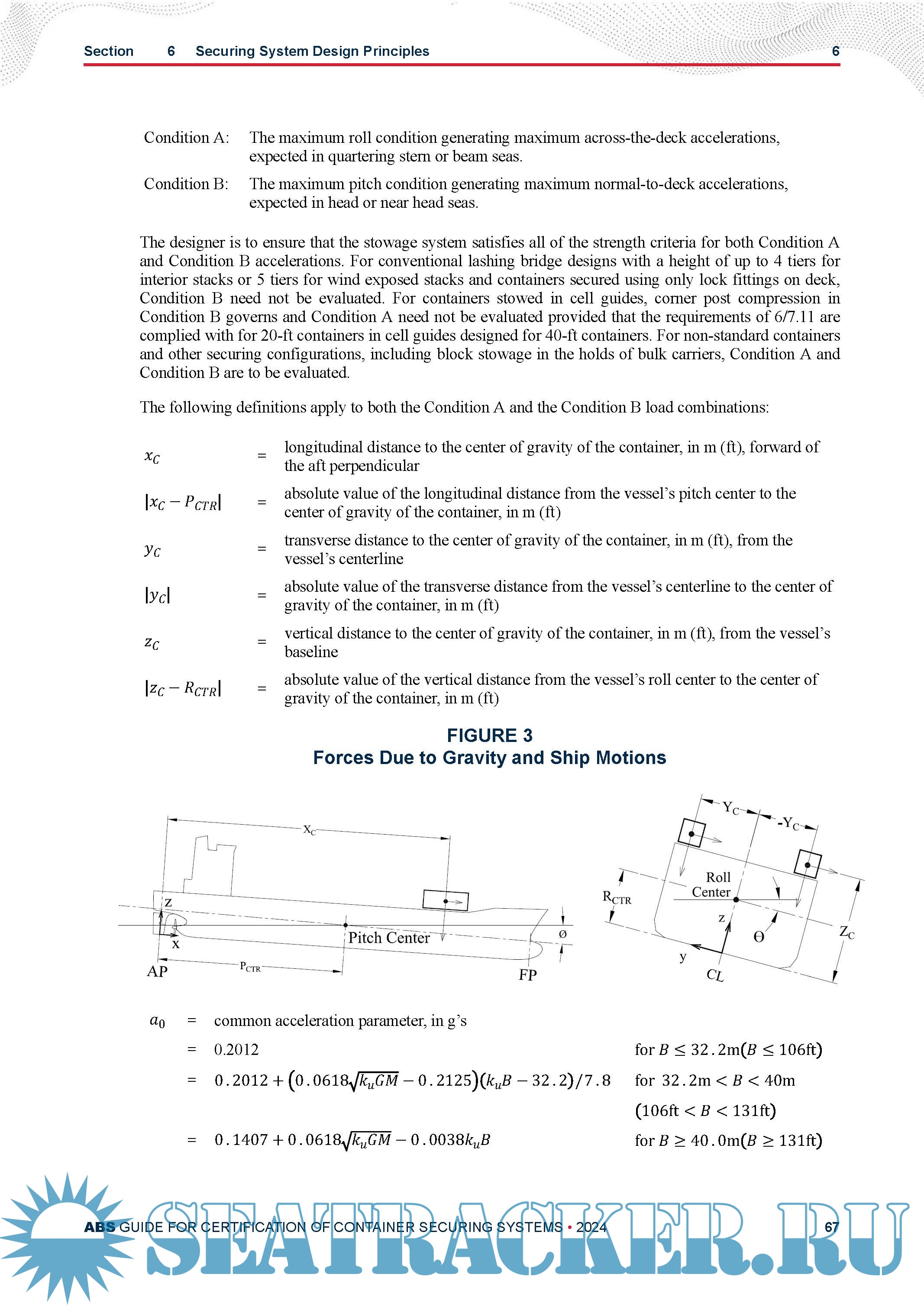 The December 2024 edition revises the pitch period to align with the Marine Vessel Rules and removes special consideration for design loads of lower corner castings. The requirements are based on SI units, and the values shown in U.S. (foot-pound-second) units are derived by numerical conversion.