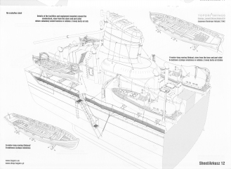 Description: Number 38 in this series is about the famous Japanses Destroyer Akizuki of WW2. Scale plans include main superstructure details from 1942, at various levels, navigation bridge, upper deck, funnel, artillery/batteries director, turrets, masts, radar antennas, cutaways, etc. As a bonus there A3 (A4) size sheet with top & side views of the battleship and her details. All drawings are first class and you can use them to add much more detail to your scale kit using plasticard or other materials.