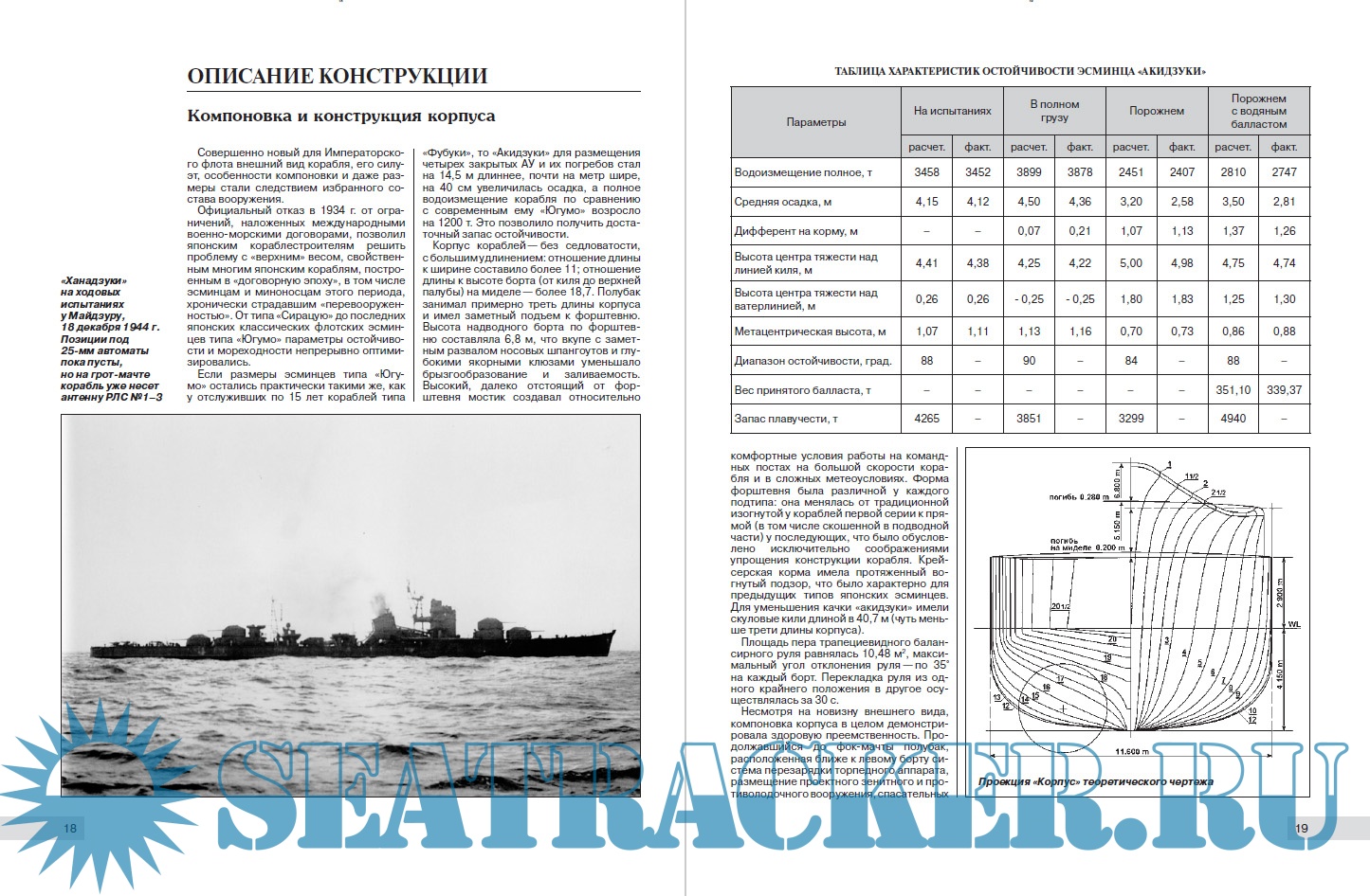 Описание: Проект специализированного эсминца для сопровождения ударных авианосных соединений японского Императорского флота был разработан задолго до триумфального марша соединения вице-адмирала Нагумо по Тихому и Индийскому океанам. По достоинству оценив прогноз генерала У. Митчелла: «Превосходящие воздушные силы будут господствовать над всеми морскими просторами», – японцы одними из первых приступили к реализации проекта нового типа кораблей – специализированного эсминца противовоздушной обороны, сочетающего огневую мощь с отличной мореходностью и огромным радиусом действия. Вооруженные феноменальными 100-мм орудиями, превосходившими все мировые аналоги, и многочисленными зенитными автоматами, эти корабли успешно дебютировали в сентябре 1942 г., отразив налет американских «летающих крепостей». Построенные по оригинальному проекту корабли типа «Акидзуки» в полной мере поддержали высокую репутацию японских эскадренных миноносцев, хотя и не смогли полностью реализовать себя в том качестве, в котором были задуманы и созданы.