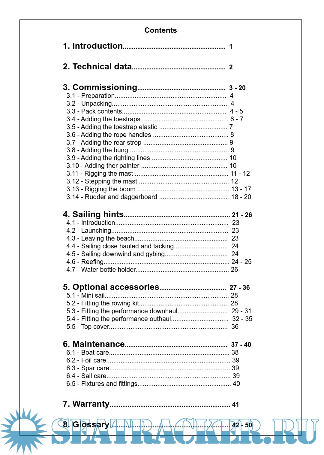 Description: The RS Tera is an exciting boat to sail and offers fantastic performance. This manual has been compiled to help you to gain the maximum enjoyment from your RS Tera, in a safe manner. It contains details of the craft, the equipment supplied or fitted, its systems, and information on its safe operation and maintenance. Please read this manual carefully and be sure that you understand its contents before using your RS Tera