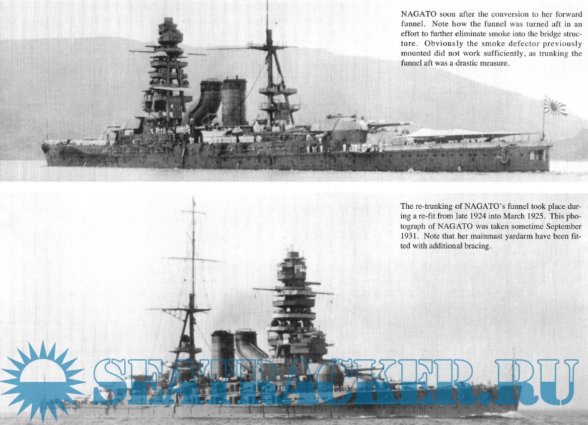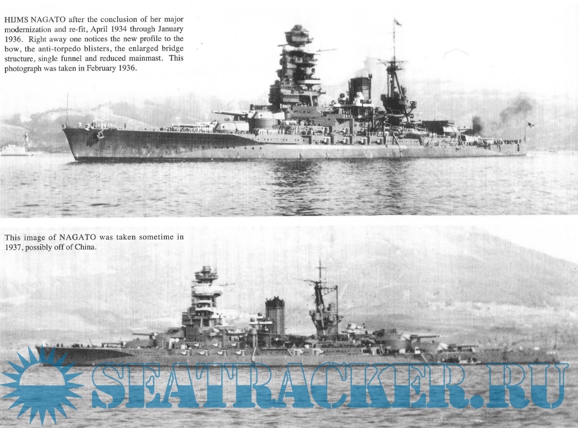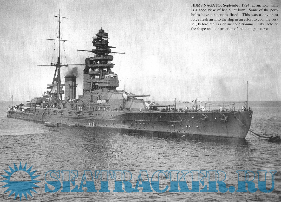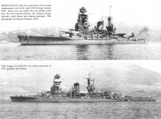 Description: The Nagato-class battleships (長門型戦艦, Nagato-gata senkan) were a pair of dreadnought battleships built for the Imperial Japanese Navy (IJN) towards the end of World War I, although they were not completed until after the war.The last of Japan's pre-Treaty capital ships, they were the first class to carry 41 cm (16.1 in) guns, the largest afloat at the time and the first bigger than 15 inches (381 mm). Nagato, the lead ship of the class, frequently served as a flagship. Both ships carried supplies for the survivors of the Great Kantō earthquake in 1923. They were modernized in 1933–1936 with improvements to their armor and machinery and a rebuilt superstructure in the pagoda mast style. Nagato and her sister ship Mutsu briefly participated in the Second Sino-Japanese War in 1937 and Nagato was the flagship of Admiral Isoroku Yamamoto during the attack on Pearl Harbor on 7 December 1941 that began the Pacific War.