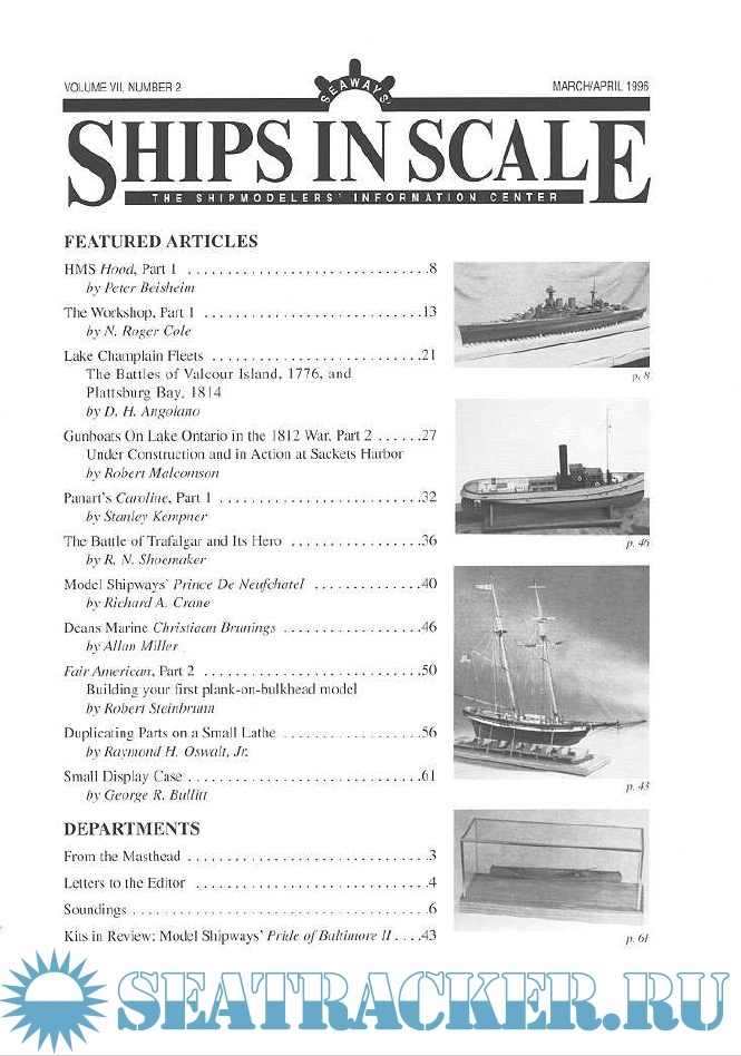 Year: 1996 Language: English Author: Scottie Dayton (Editor) Genre: Periodical publication Edition: 1996-2 Format: PDF Quality: Scanned pages Pages count: 76 Description: Seaway is the home port for Seaways Ships in Scale magazine, the leading workshop and research magazine for the ship modeler. In the magazine we explore all levels of modeling experience, all types of ships, all kinds of models, all historical eras and all construction materials