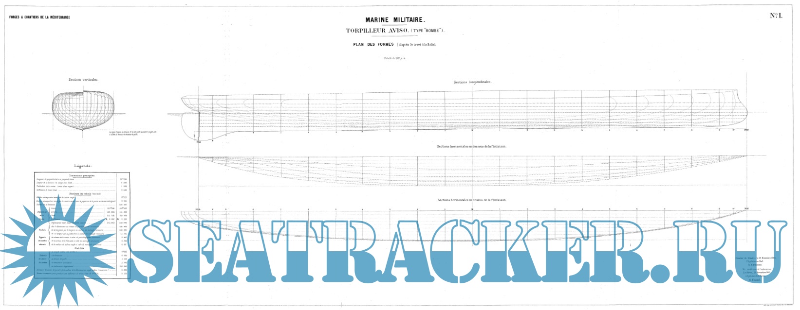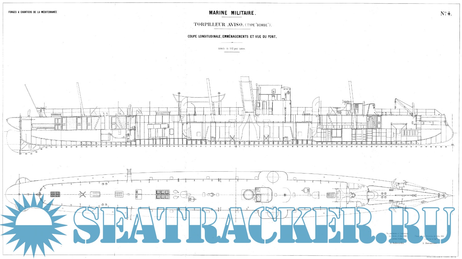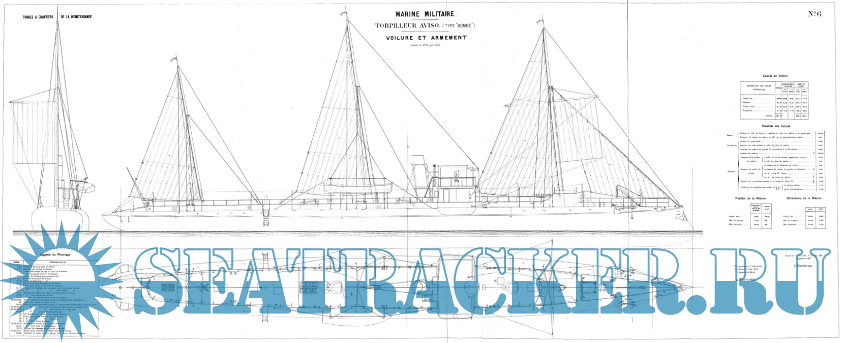 Архивные чертежи французского миноносца FLECHE 1885 год
