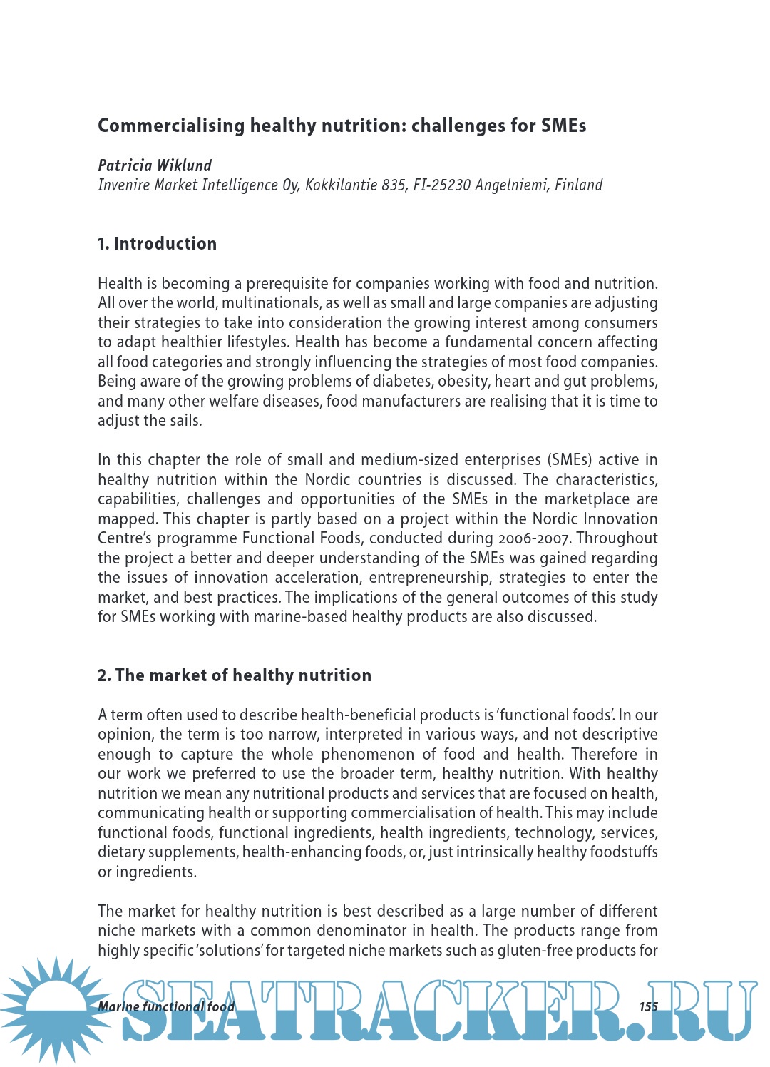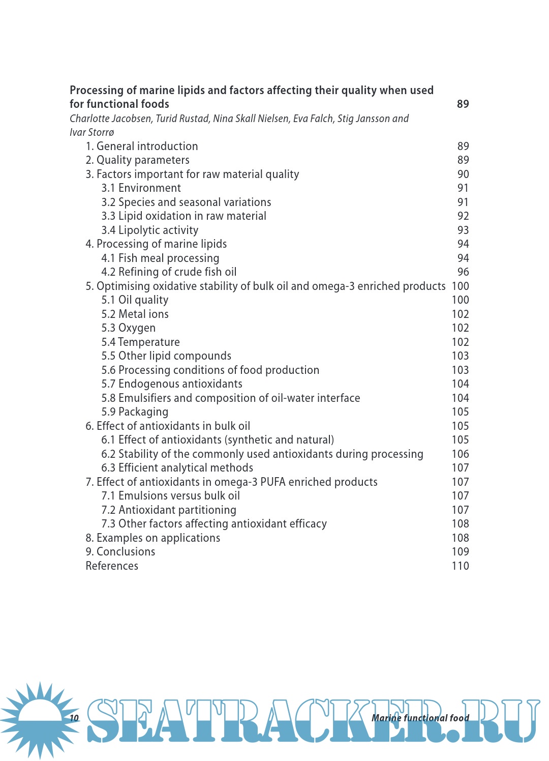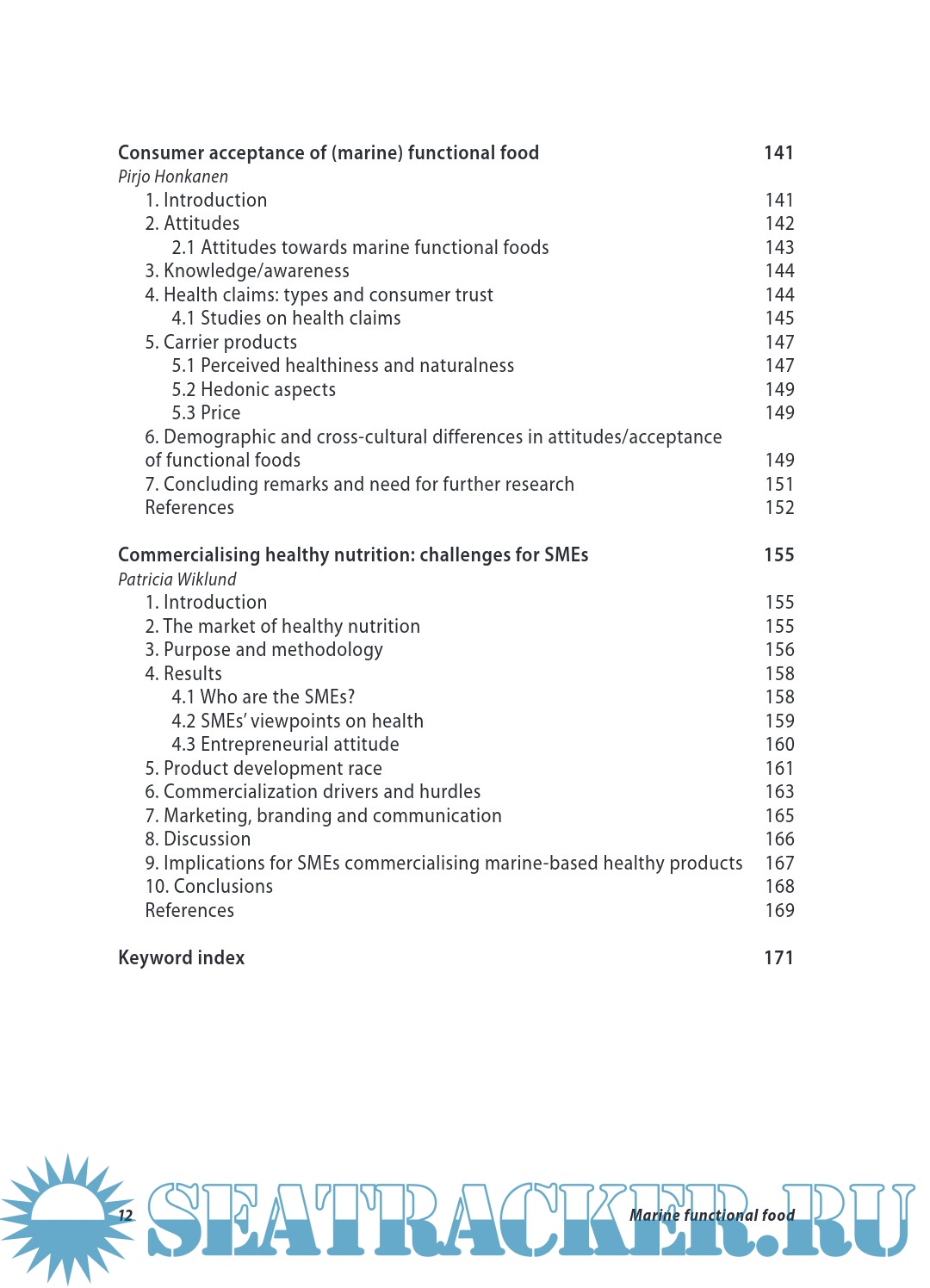 Description: Regular seafood consumption is associated with beneficial health effects. This book reviews the research on seafood and health, the use and quality aspects of marine lipids and seafood proteins as ingredients in functional foods and consumer acceptance of (marine) functional food. The first chapter covers novel merging areas where seafood may prevent disease and improve health such as in cognitive development, mental health, cancer, allergy and oxidative stress are highlighted. Cases where nutrients in seafood may have health protective effects such as in proteins, peptides, amino acids, selenium, chitosan, glucosamine and chondroitin sulphate are also discussed. The next chapters cover quality aspects of marine lipids and seafood proteins as ingredients in functional foods. Lipids and proteins must have and retain a high quality so that the sensory and functional properties and the shelf life of the final product are acceptable. The methods used for processing marine lipids and proteins, are discussed as well as the different factors that can affect their quality in functional foods. The book then concentrates on factors related to consumers' attitudes, knowledge and awareness of functional foods. There are variations in types of carrier products and of demographic and cross-cultural factors in acceptance of functional foods. Finally, the book discusses challenges for small and medium enterprises to commercialise healthy nutrition. Variations in characteristics, capabilities, challenges and opportunities in the marketplace are presented using a Nordic study as reference.