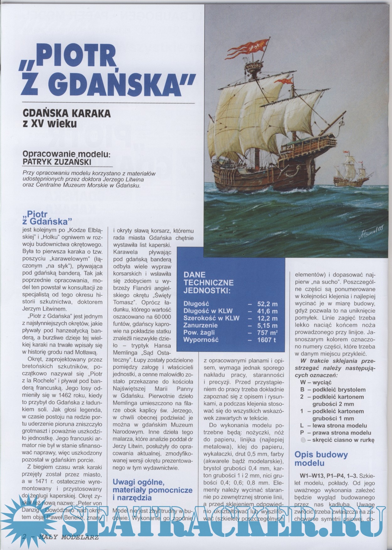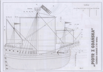 Описание: 15 листов цветных выкроек и инструкций для изготовления бумажной модели караки 15 века Петр из Данцига (Piotr z Gdanska) в масштабе 1:200