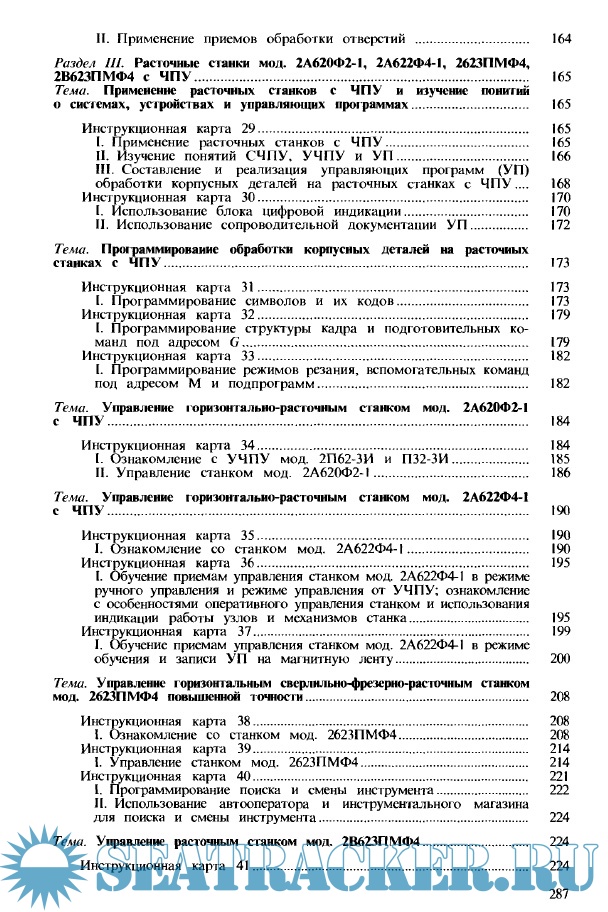 Описание: Содержаться разработанные в виде инструкционных карт указания по обучению работе на вертикально-расточных, горизонтально-расточных, координатно-расточных и расточных станках с ЧПУ; даны приемы наладки и управления станками и обработка корпусных деталей; приведены сведения об организации рабочего места, безопасности труда и техническом контроле деталей.