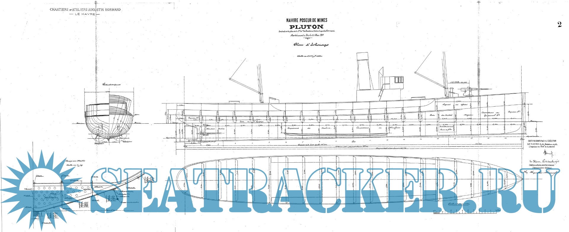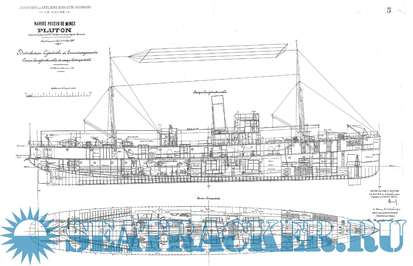 Архивные чертежи французского минного заградителя PLUTON 1913 год