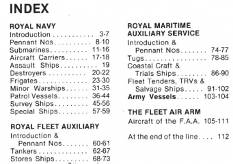 Year: 1985 Language: English Author: Mike Critchley Genre: Catalog, Encyclopedia, Historical Publisher: Maritime Books Format: PDF Quality: eBook Pages count: 116 Description: This revised and updated guide to Ships, Aircraft and Armaments of the Royal Navy has now been expanded to include ships of the Royal Marines and the Border Agency as of 1986. The book begins with a detailed overview of the current state of the Royal Navy, followed by sections detailing the fleets of the Royal Navy, Royal Navy auxiliary vessels and support vessels operated under contract. This also includes vessels of the Royal Marines, Land Forces and Border Troops. This volume, which contains color images for each class of ships, also contains silhouettes, class lists, pennant numbers, technical specifications and brief notes. At the end of the book is a list of ships mothballed in the United Kingdom and performing a secondary role after decommissioning, as well as a brief description of ships that have been scrapped since the publication of the previous edition.