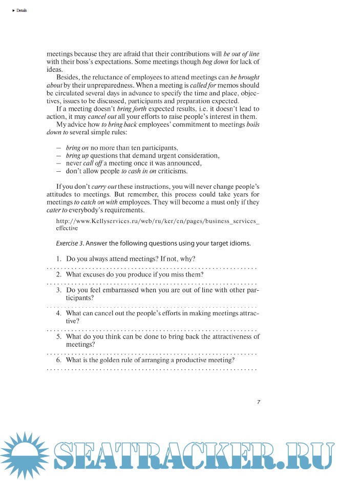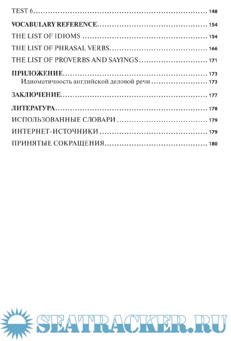 Описание: Учебное пособие закладывает основы понимания проблем делового общения, обогащает словарный запас студентов идиоматическими выражениями и фразовыми глаголами, формирует навык их узнавания и употребления в письменных текстах и разговорной практике, в деловых контекстах и в переводе. В пособии даны примеры применения идиом и фразовых глаголов в жанрах интервью, публичных выступлений, журнальных статьях, письмах к редактору и заголовках, а также в таких сферах деловой коммуникации, как собрания, презентации, переговоры, общение по телефону. Пособие также содержит большое количество упражнений на употребление идиом и фразовых глаголов в различных функциях: для организации информации в сообщении, передачи отношения говорящего к высказыванию, выражения эмоций и чувств деловых партнеров. В пособии имеются тесты для проверки усвоения идиоматических выражений и фразовых глаголов и справочный материал, включающий 325 идиоматических выражения, 142 фразовых глагола и 11 пословиц и поговорок.