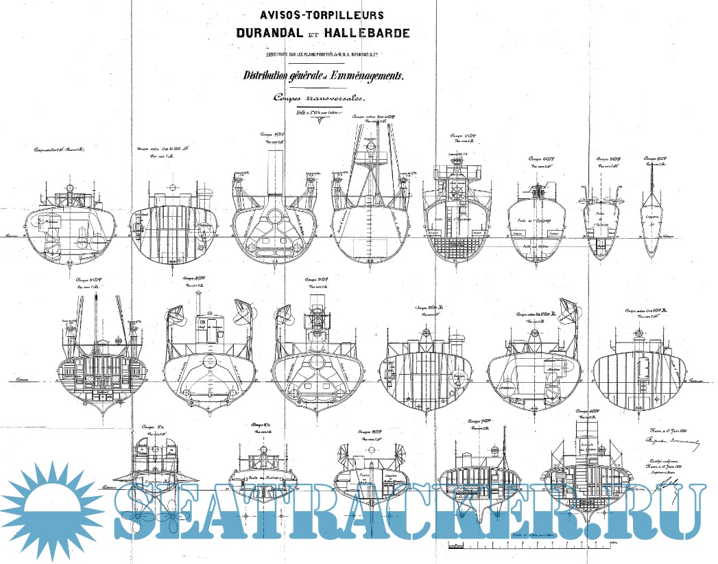 Архивные чертежи французского миноносца HALLEBARDE 1899 год