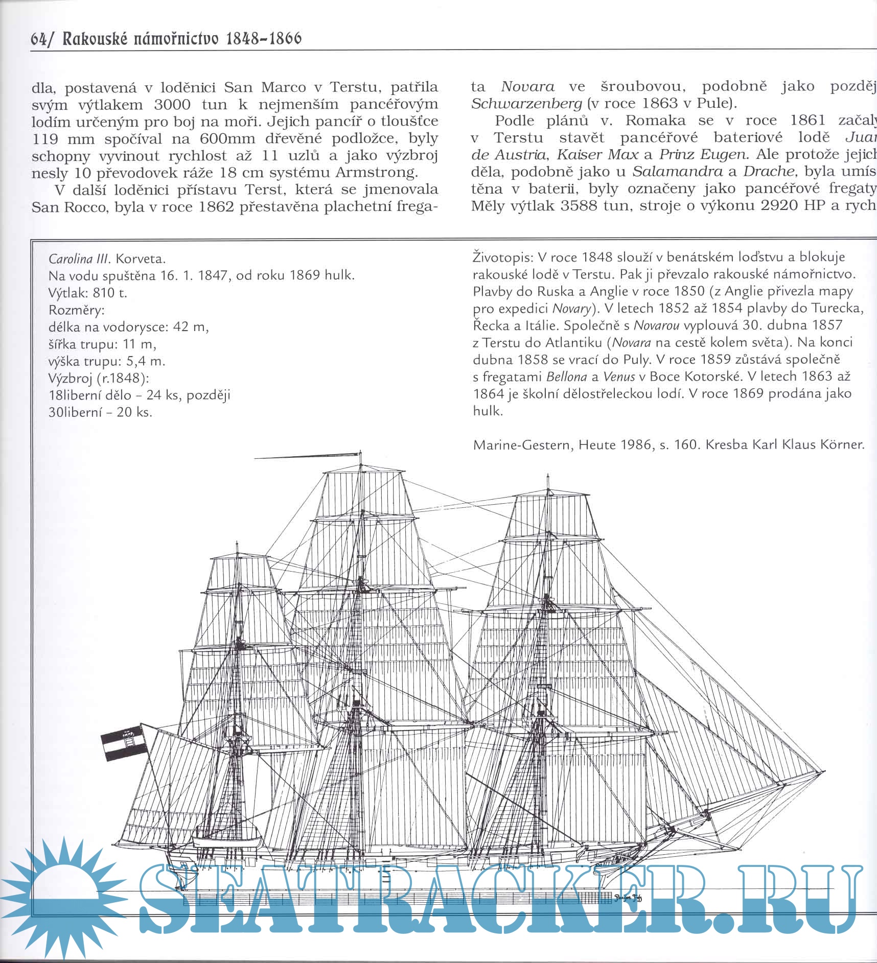 Year: 2004 Language: Czech Author: Ctirad Benes Genre: Historical Publisher: Mare-Czech, NV & Ares Format: JPEG Quality: Scanned pages Pages count: 183 Description: Po několik staletí, až do roku 1918, byla rakouská a později Rakouská flotila silou, která vládla na Jadranu a Jadranu. A přestože flotila byla malá, schopnosti a dovednosti rakouských, maďarských, českých, chorvatských, slovinských a dalších námořníků stačily k tomu, aby vzbudily hrůzu v srdcích četnějších tureckých a později italských a francouzských námořníků, a přeměnily Jadran na rakouské "jezero", kam se neodvážili ani Britové. Kniha vypráví o zajímavém časovém úseku, kdy Rakouské námořnictvo po revolučních nepokojích v roce 1848 získalo novou organizaci, talentové vedení a sklízí úspěchy nejen ve vojenské oblasti, ale také ve vědecko-geografické oblasti a prosazuje svou regionální dominanci vítězstvím nad dány u Helgolandu, nad Italy na Lisse. Kniha je rozdělena do kapitol které podrobně popisují historii a konstrukci lodí, výzbroje, od děl po pistole, uniformy, základny, parní stroje ve flotile.