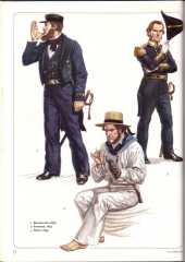 Year: 1977 Language: English Author: Robert Wilkinson-Latham Genre: Historical Publisher: Osprey Publishing Edition: Men at Arms Series, 65 Format: JPEG Quality: Scanned pages Pages count: 47 Description: Of all the world's seaborne military organizations, the British Royal Navy is perhaps the most prestigious. Protector of the British Empire and defender of British freedom, it has provided the template on which nearly all other national navies have modelled themselves. This book explores the changes in the uniforms of the Royal Navy from the 18th Century to 1970. It includes details from the dress regulations as laid down in the first official illustrated text on the topic, which dated from 1825, up through the present day, and addresses all variations for climate, rank, and equipment requirements.