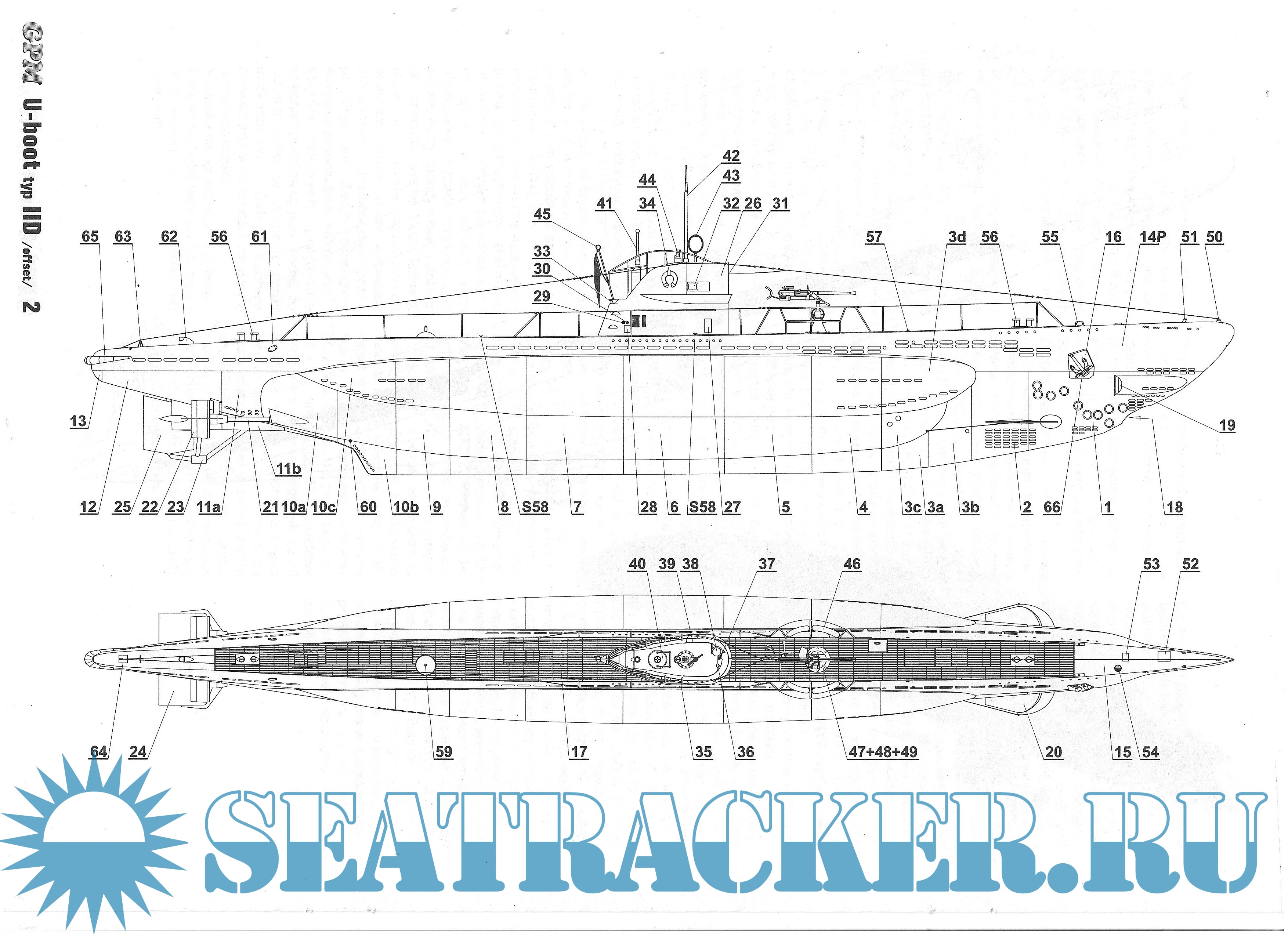 20 листов цветных выкроек и инструкций для изготовления бумажной модели немецкой подводной лодки U-141 U-boot typ IID в масштабе 1:100