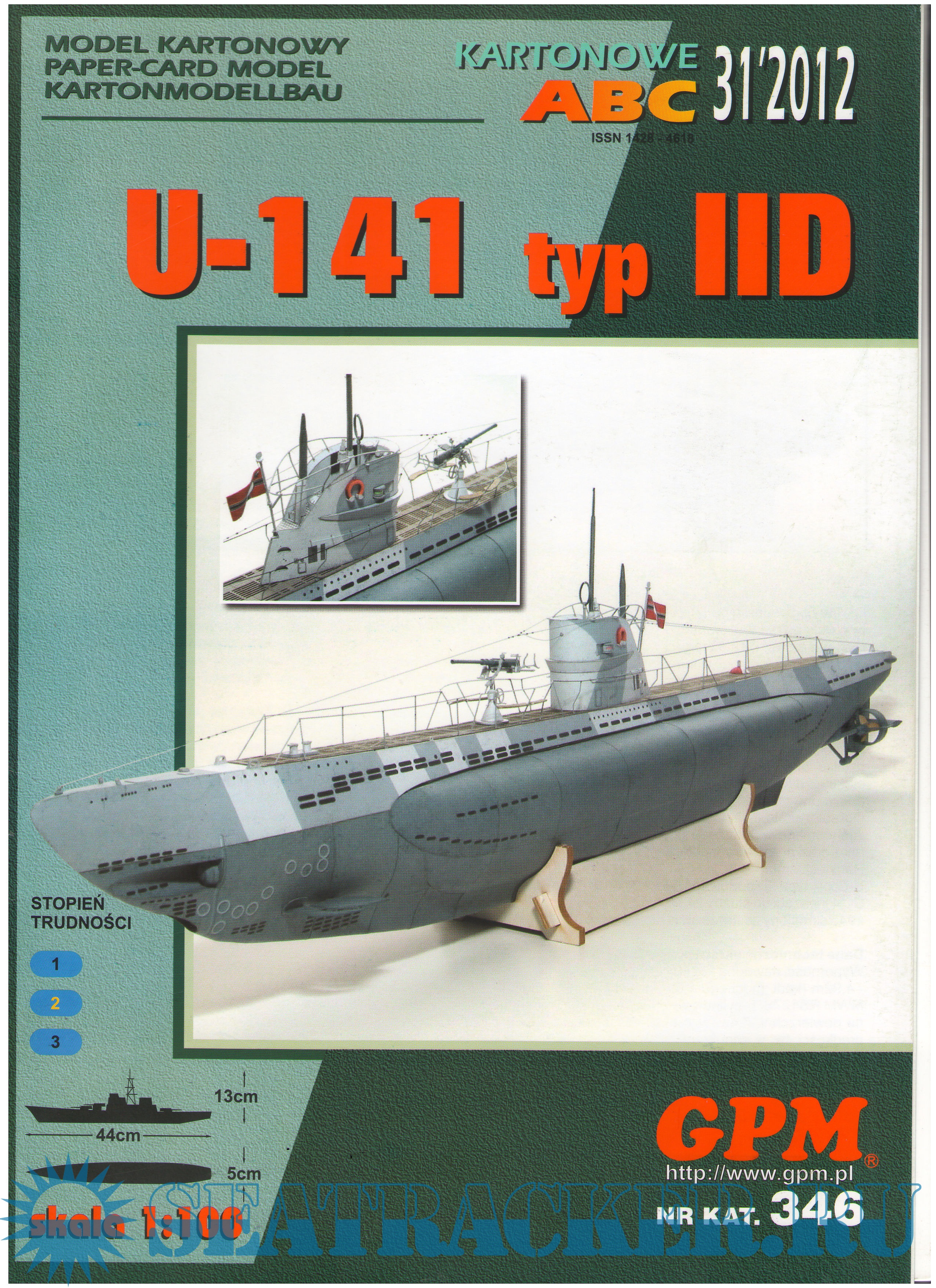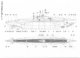 Описание: 20 листов цветных выкроек и инструкций для изготовления бумажной модели немецкой подводной лодки U-141 U-boot typ IID в масштабе 1:100