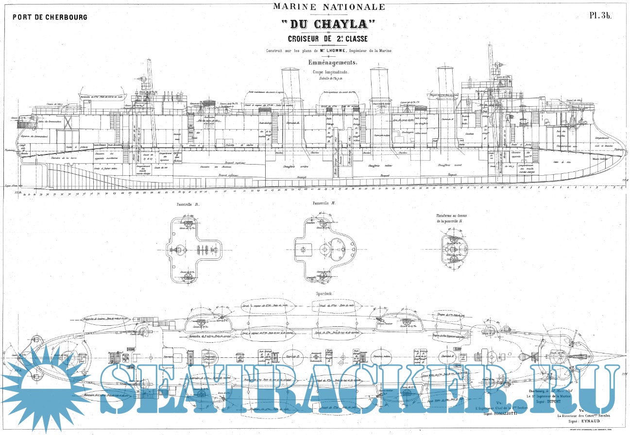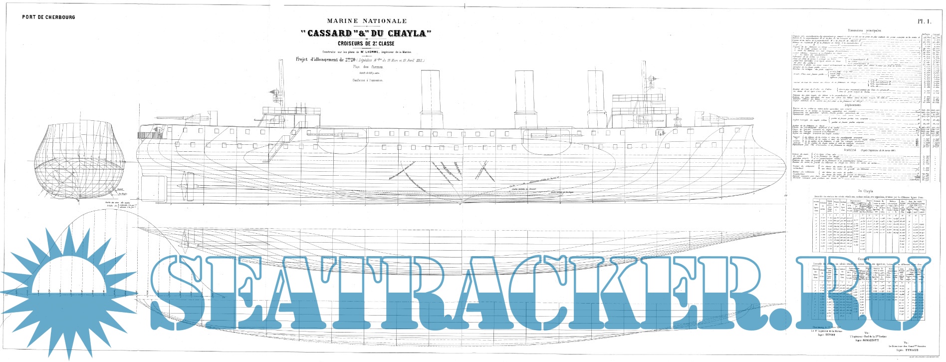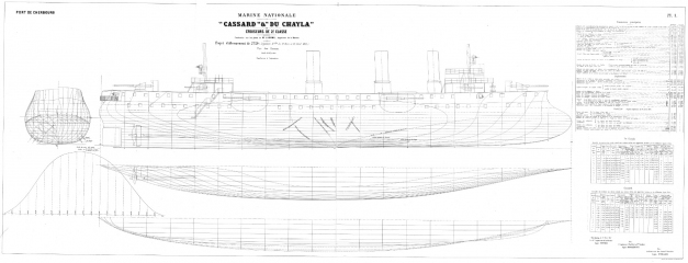 Архивные чертежи французского крейсера 2-го ранга DU CHAYLA 1895 год