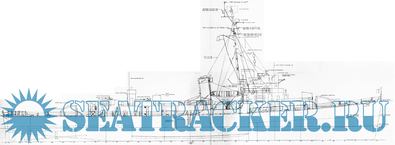 Архивные чертежи эсминца США DE-701 - USS Osmus (тип « Buckley») по состоянию на 1958 год