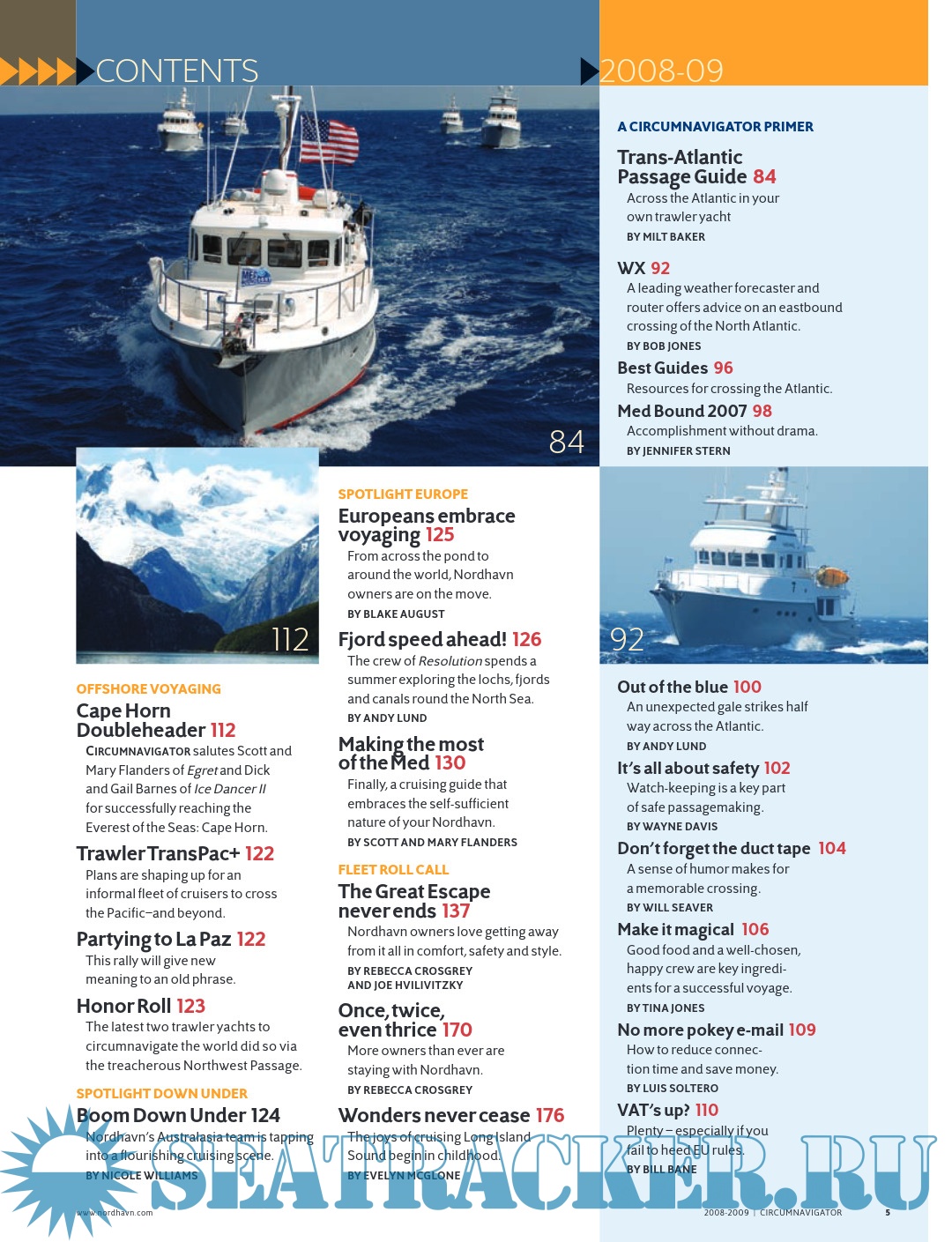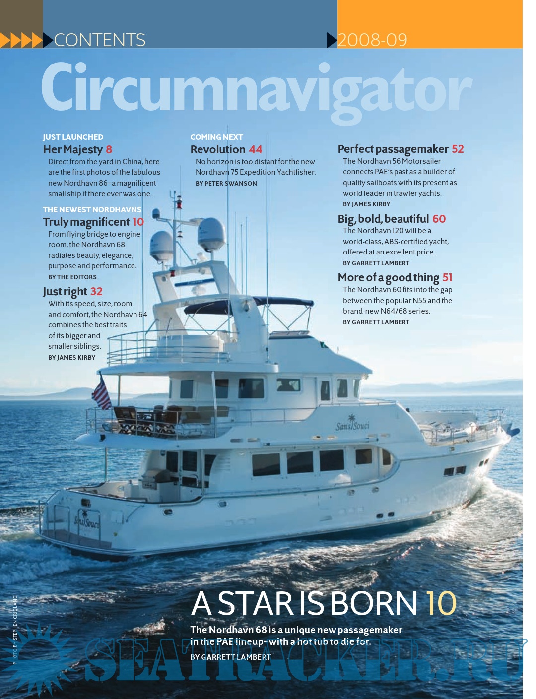 Description: Circumnavigator is an information-packed magazine on passagemaking under power sponsored by Nordhavn. The years 2008-2009 are presented in attached PDF file.