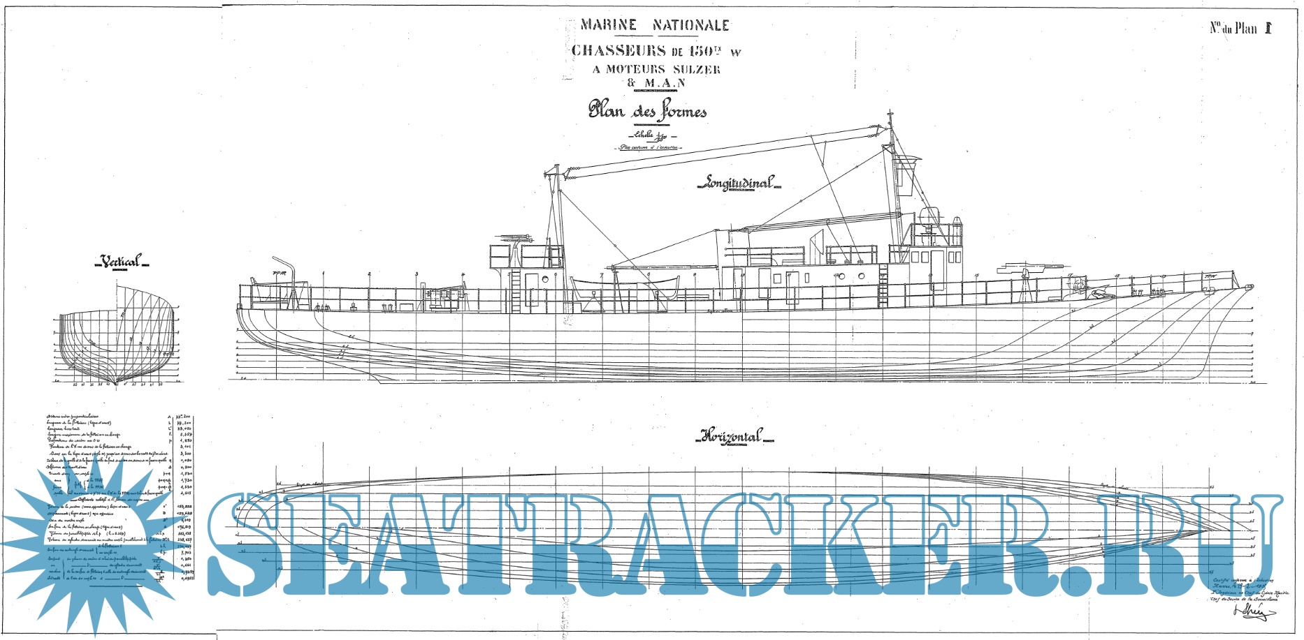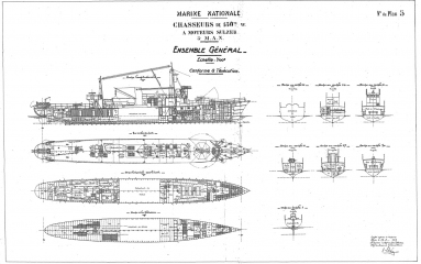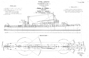 Описание: 21 лист архивных чертежей французской канонерской лодки Chasseurs de Sous-Marins CH2 1933 год