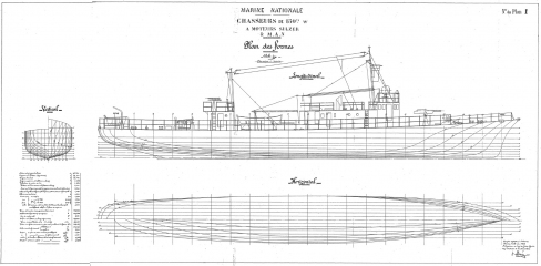 Архивные чертежи французской канонерской лодки Chasseurs de Sous-Marins CH2 1933 год