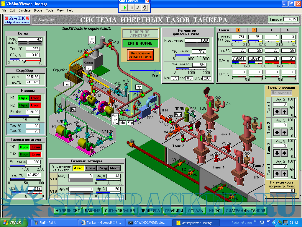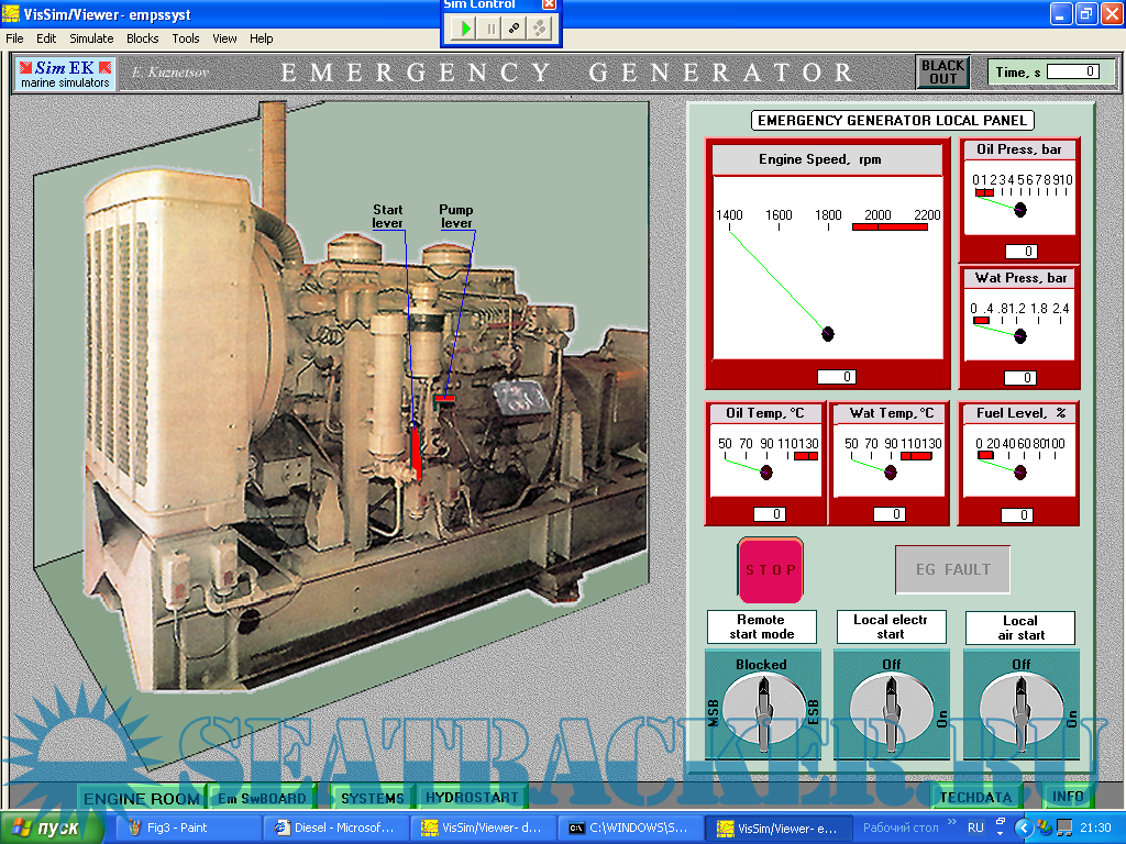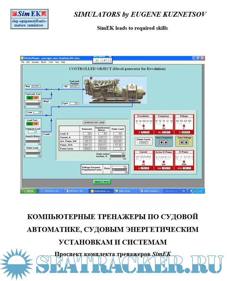 Описание: Тренажеры SimEK предназначены для использования в процессе подготовки судовых меха-ников и электромехаников в высших и средних учебных заведениях морского и речного флота. Согласно международному Кодексу подготовки, дипломирования моряков и несения вахты (ПДМНВ-78/95) судовые механики (и электромеханики) должны обладать достаточной компетентностью для эксплуатации средств автоматики. Обеспечение учебных заведений лабораторным оборудованием, необходимым для до-стижения требуемого уровня компетентности данных судовых специалистов в области су-довой автоматики, является трудной и дорогостоящей проблемой. Существующие компьютерные тренажеры судового энергетического оборудования, как правило, не предоставляют возможности изучения устройства и действия средств автома-тики, и, тем более, выполнения эксплуатационной наладки средств автоматики, входящей в профессиональные обязанности судовых механиков и электромехаников. Эти тренажеры предназначены, в основном, для обучения чисто профессиональным навыкам использования судового энергетического оборудования, оставляя в стороне многие необходимые учебные задачи. Создание нужного числа рабочих мест на таких тренажерах требует значительных затрат, вследствие высокой стоимости тренажеров. Пакет SimEK содержит компьютерные тренажеры типовых и специализированных систем автоматизации судового энергетического оборудования, а также некоторых судовых механизмов и систем. В основном, на тренажерах моделируются электронные и микропроцессорные системы управления. Тренажеры SimEK позволяют обучаемым получить необходимые знания и умения по устройству, использованию и эксплуатационной наладке судовых средств автоматизации судового энергетического оборудования на требуемом уровне компетентности. Тренажеры служат хорошим дополнением аппаратного лабораторного оборудования, а