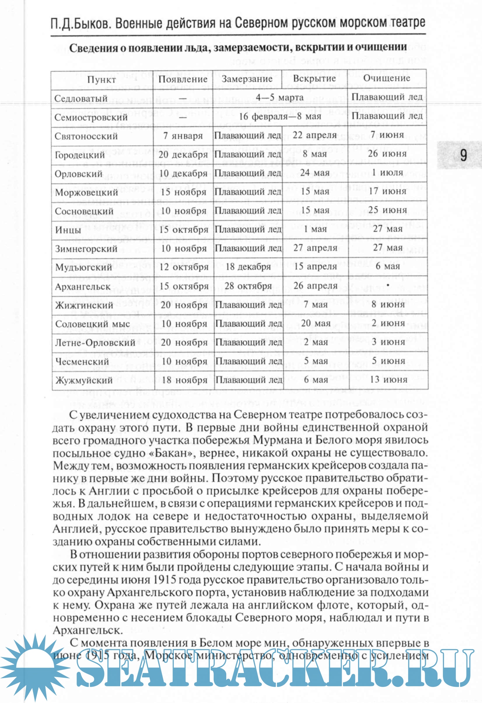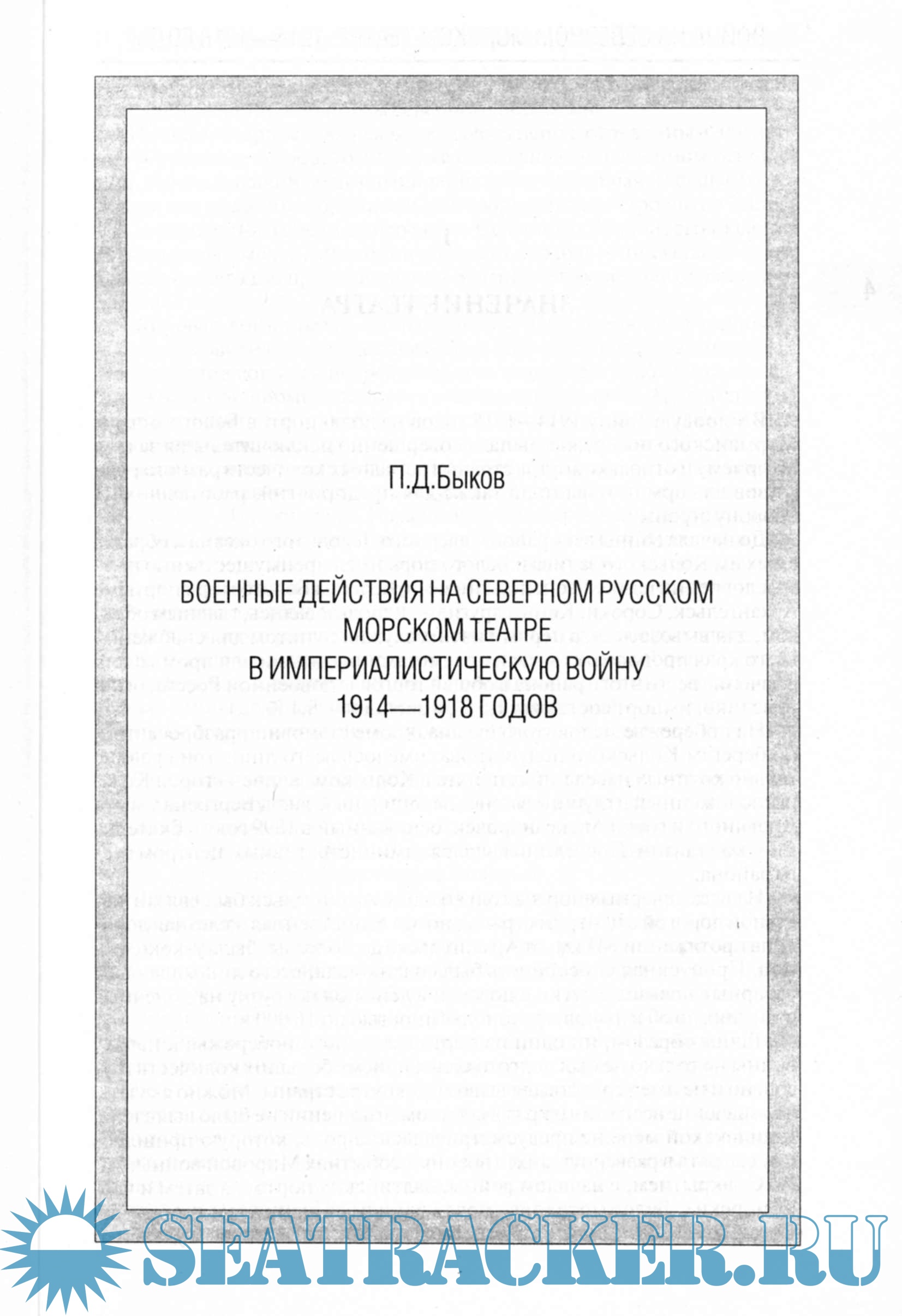 СодержаниеП.Д. Быков. Военные действия на Северном русском морском театре в империалистическую войну 1914-1918 годов