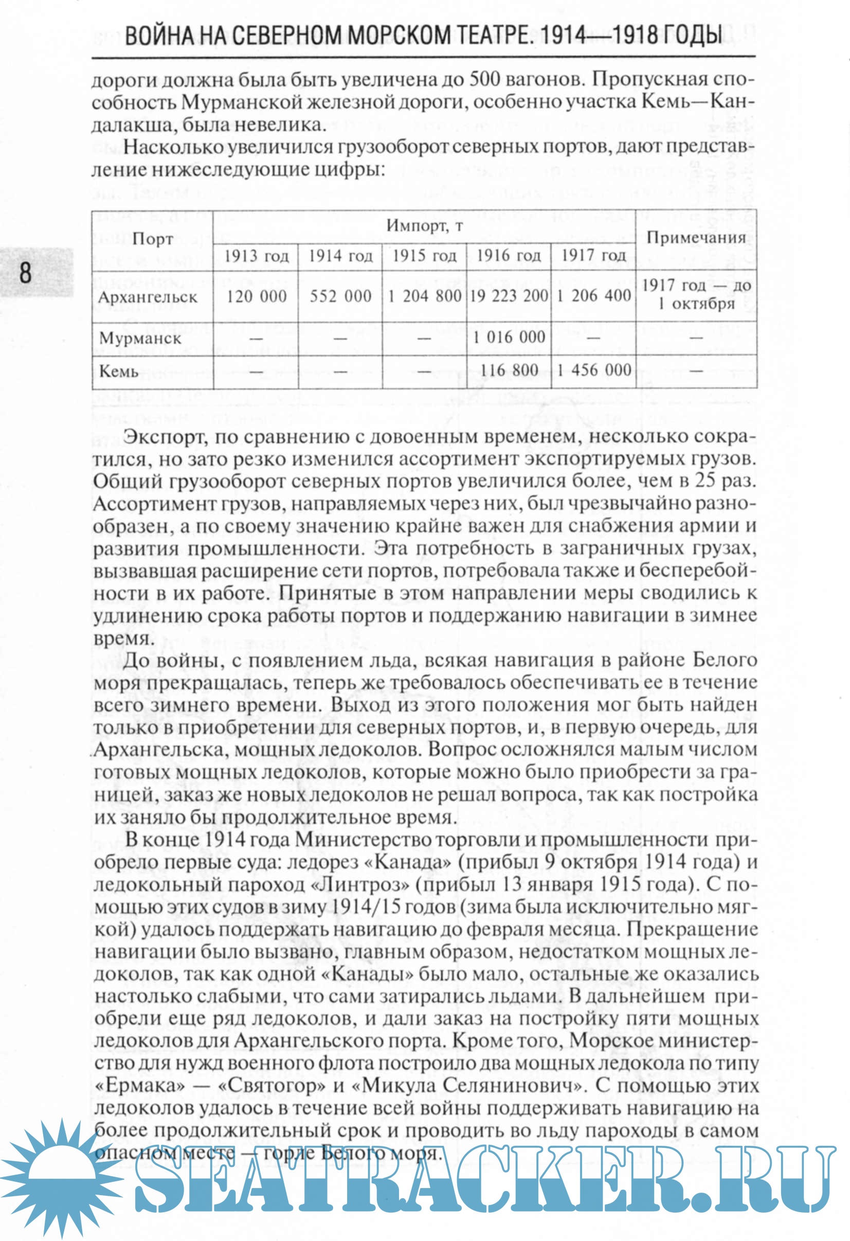 Содержание П.Д. Быков. Военные действия на Северном русском морском театре в империалистическую войну 1914-1918 годов I. Значение театра II. Организация III. Оборона Архангельска и побережья Белого моря IV. Оборона Кольского залива V. Оборудование Иокангской базы VI. Судовой состав VII. Военные действия и охрана путей Служба боевых кораблей во льдах Белого моря I. Из записок командира английского линейного корабля "Юпитер" II. Постановка минных заграждений в Белом море III. Крушение на море Н.А. Залесский. Флотилия Северного Ледовитого океана в Гражданскую войну Л.А. Кузнецов. Транспорт "Бакан"