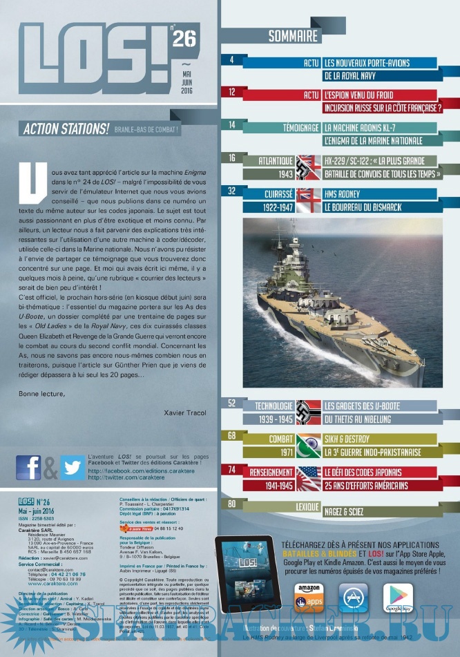 Description: LES ÉDITIONS CARAKTÈRE PRENNENT LE LARGE EN LANÇANT UN NOUVEAU MAGAZINE CONSACRÉ À LA GUERRE NAVALE !Les sujets passionnants ne manquent pas et LOS ! met un point d’honneur à les présenter au lecteur comme cela n’a jamais été fait dans la presse française jusqu’à présent. Un seul mot d’ordre pour l’équipe rédactionnelle : rigueur scientifique et présentation ludique !S’appuyant sur un fond photographique d’exception, sur des plans de bateaux et d’avions, les éditions Caraktère innovent une fois de plus en vous proposant aussi des vues 3D détaillées, le tout au service de textes soigneusement rédigés par des auteurs spécialisés. Vous comprendrez ainsi comment fonctionne un submersible, comment se déroule un combat naval, comment est conçu un cuirassé ou comment attaquent les avions-torpilleurs !Revivez au fil des pages l’aventure humaine exceptionnelle des matelots de la marine marchande affrontant les U-Boote en Arctique, ou celle des pilotes embarqués sur les porte-avions américains et japonais. Lisez les exploits des hommes-grenouilles italiens en Méditerranée, des équipages des vedettes lance-torpilles dans la Manche, des sous-marins soviétiques de la guerre froide ou des grands cuirassés de 1914-18