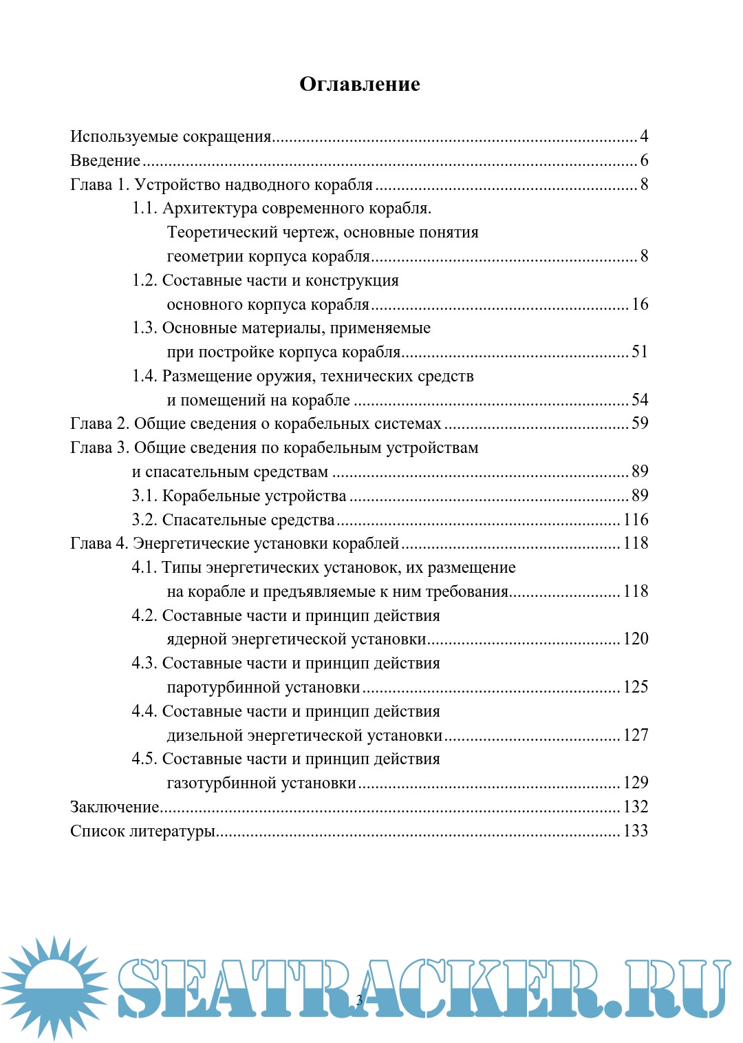 Описание: Изложены устройство надводного корабля, размещение оружия и технических средств, общие сведения по корабельным системам, устройствам и спасательным средствам, типы энергетических установок, их размещение и требования предъявляемые к ним. Включены материалы, имеющие исключительное практическое значение для студентов, обучающихся по морским специальностям.