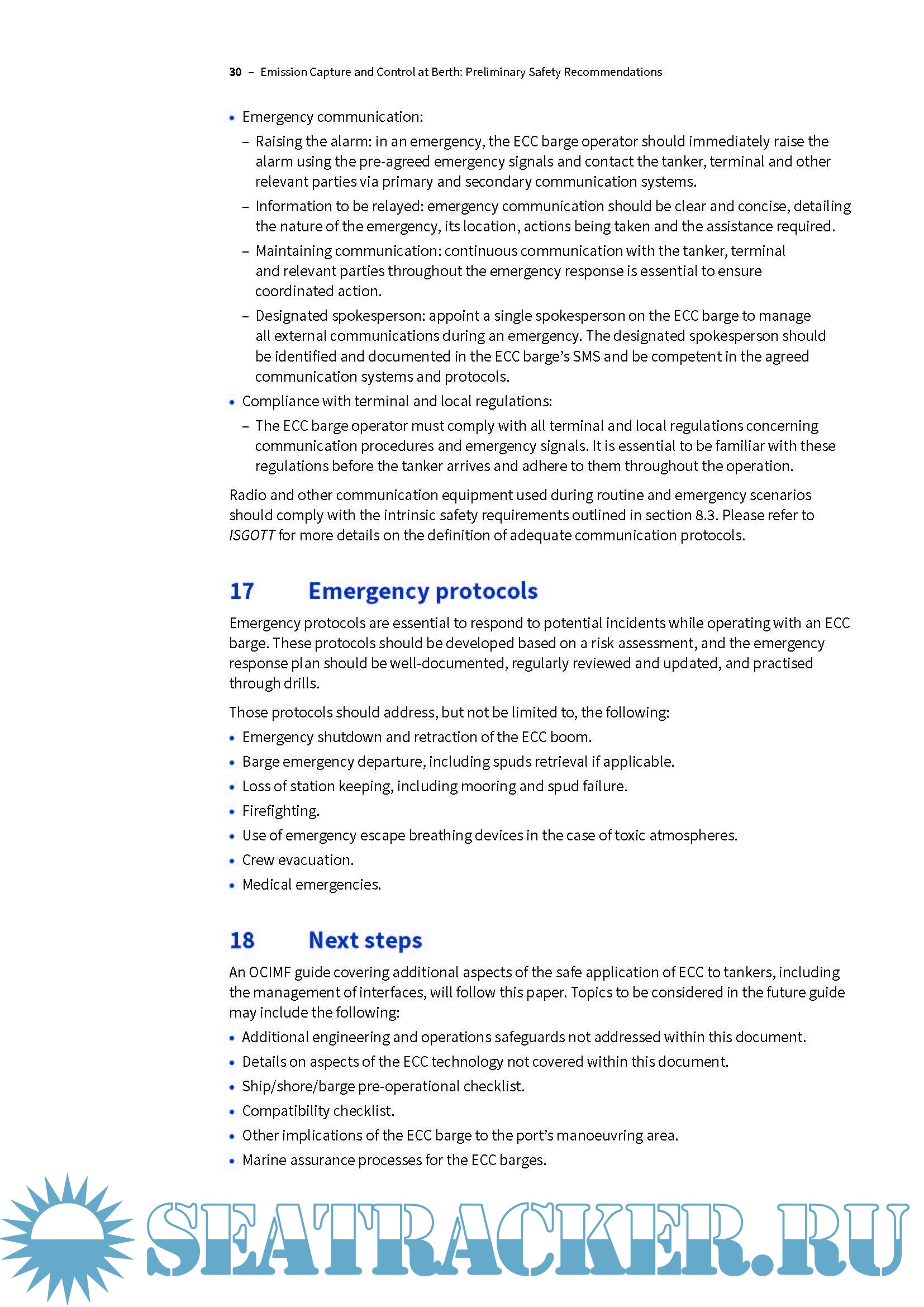 This paper highlights critical risks and technical and operational challenges and identifies potential preventive measures to safely apply a barge-based ECC. An OCIMF guide covering additional aspects of the safe application of ECC to tankers, including the management of interfaces, will follow this paper.
