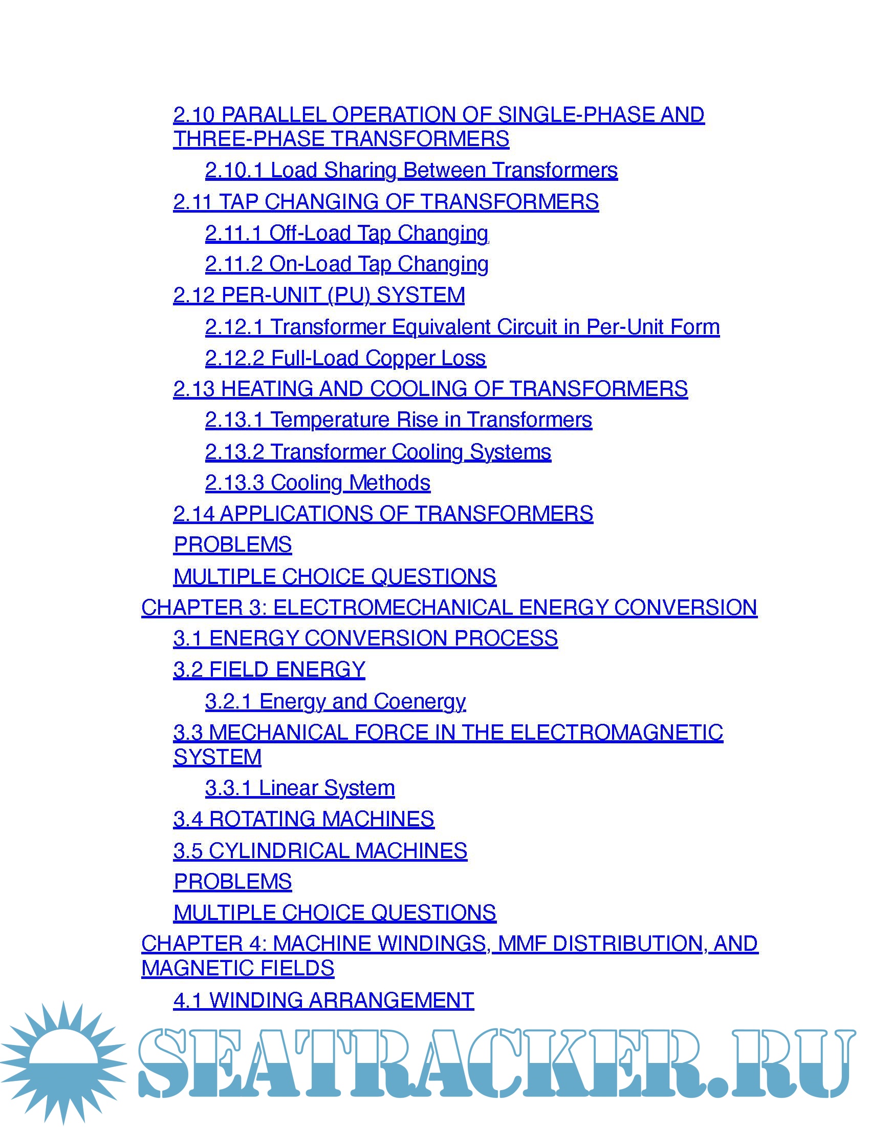 The book then extensively discusses different types of electrical machines, dc machines, three-phase induction machines, and three-phase synchronous machines; single-phase motors, which are widely used in household and office appliances.
