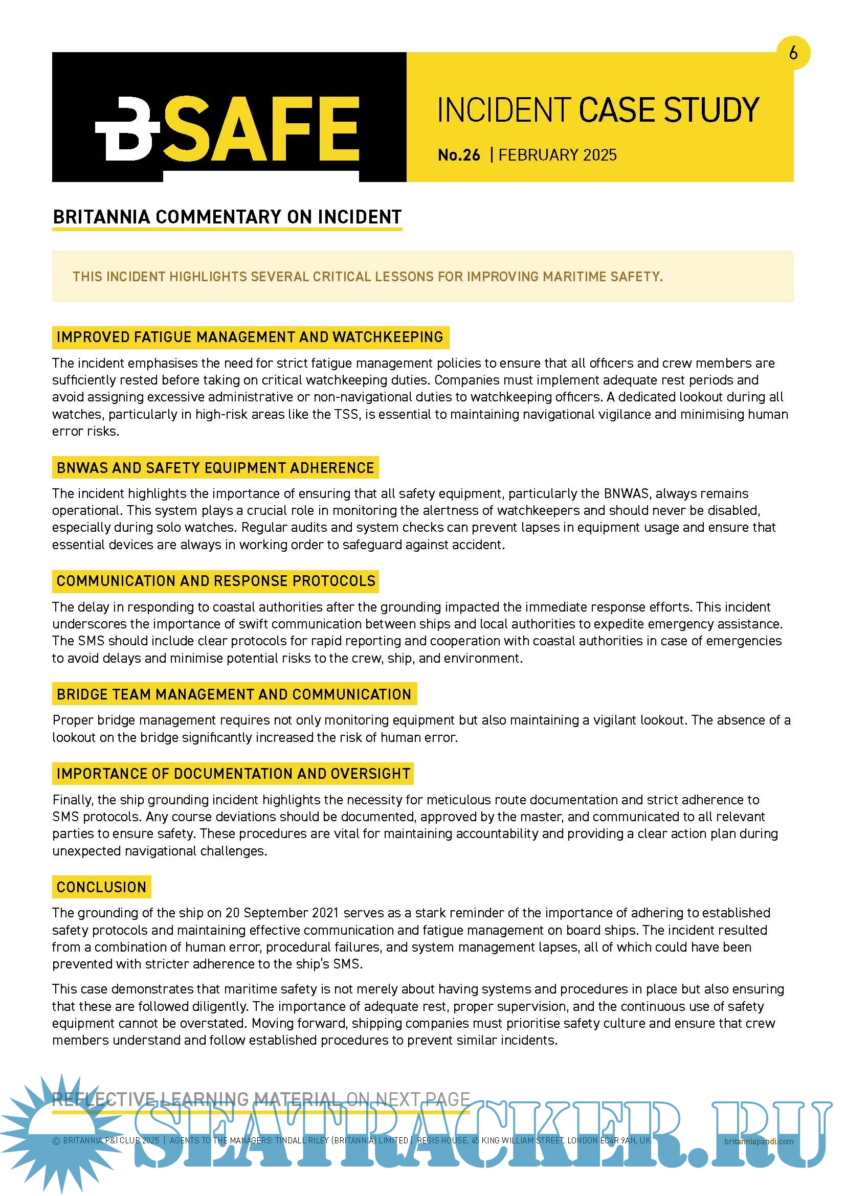 BSafe: Incident Case Study No.23 (May) - Britannia P&I Club [2024, PDF]