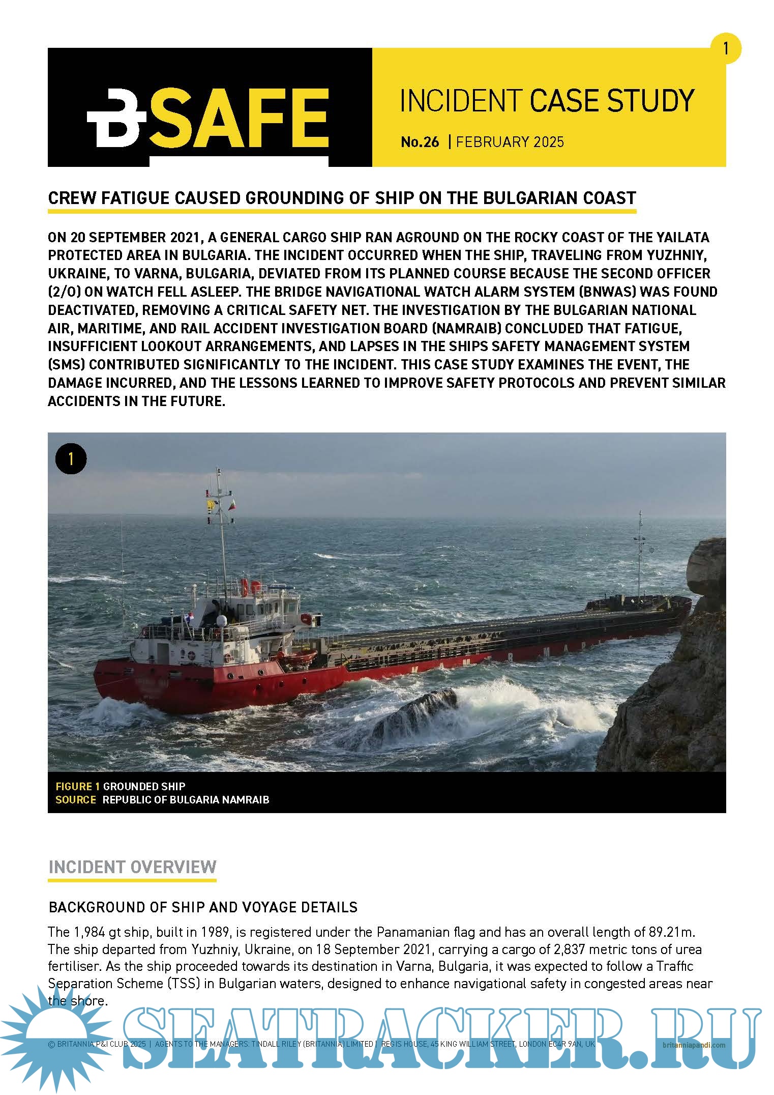 Description: Britannia Loss Prevention BSafe: Incident Case Study No.26 February, 2025 - Crew Fatigue caused grounding of ship on the Bulgarian coast.