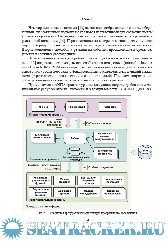 Описание: Монография посвящена проблемам создания и практического использования подводных робототехнических комплексов, включающих автономные и телеуправляемые необитаемые подводные аппараты и средства их обеспечения для исследования и освоения океана. Представлены результаты научных исследований и разработок, выполненных в Институте проблем морских технологий ДВО РАН за последнее десятилетие. На основе многолетнего опыта работ определены и исследованы приоритетные проблемы по организации мультиагентной архитектуры бортовых систем подводных роботов, задачи интеллектуального (ситуационного) управления в условиях сложной подводной среды, средства и методы навигационного обеспечения, состав и особенности научно-исследовательского комплекса, перспективы создания подводных роботов различного назначения с универсальным набором рабочих функций. Особое внимание уделяется практическим разработкам и их применениям в реальных морских работах научного и прикладного значения.