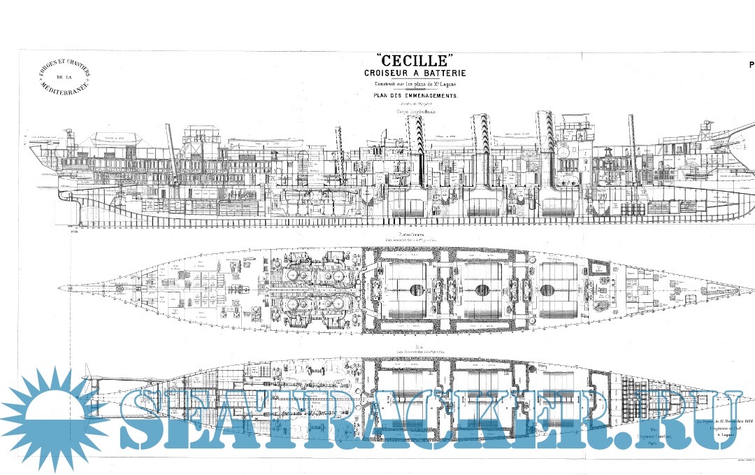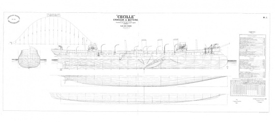 Архивные чертежи французского крейсера AMIRAL CECILLE 1888 год - нет [1888, TIFF]