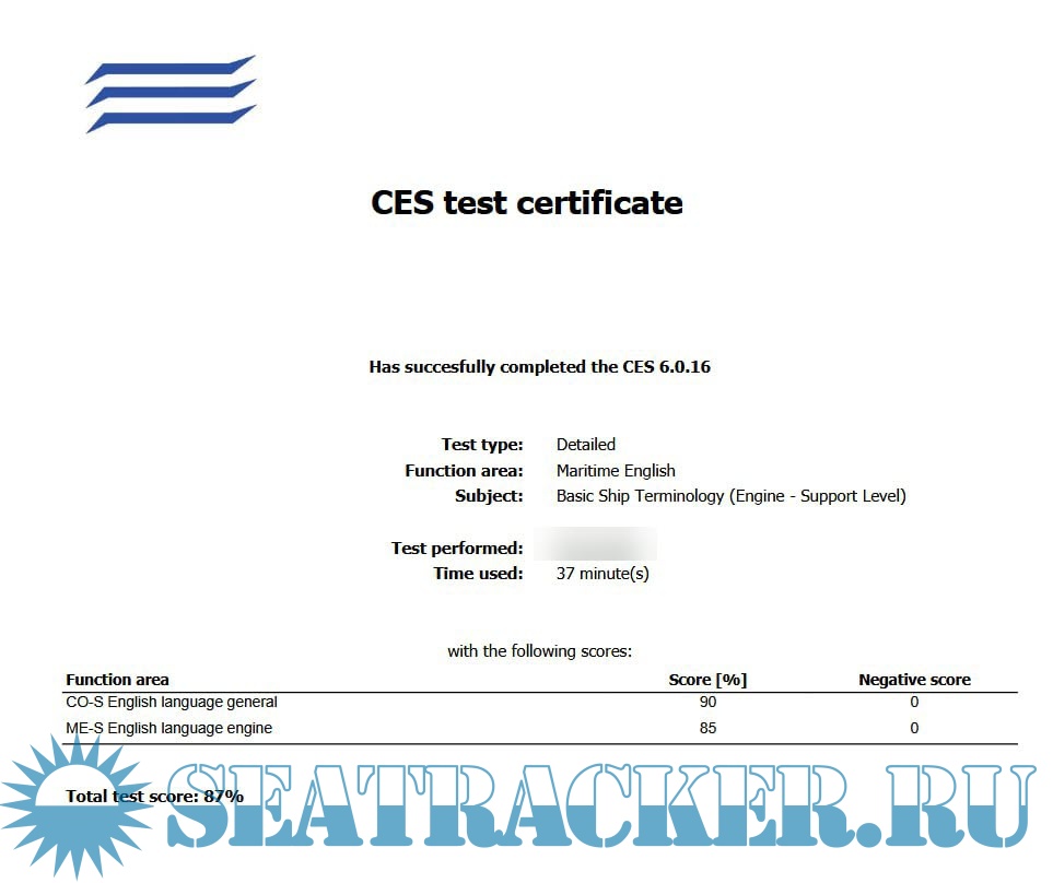 CES Test 6.0.16 | Engine Support Level (Maritime English)