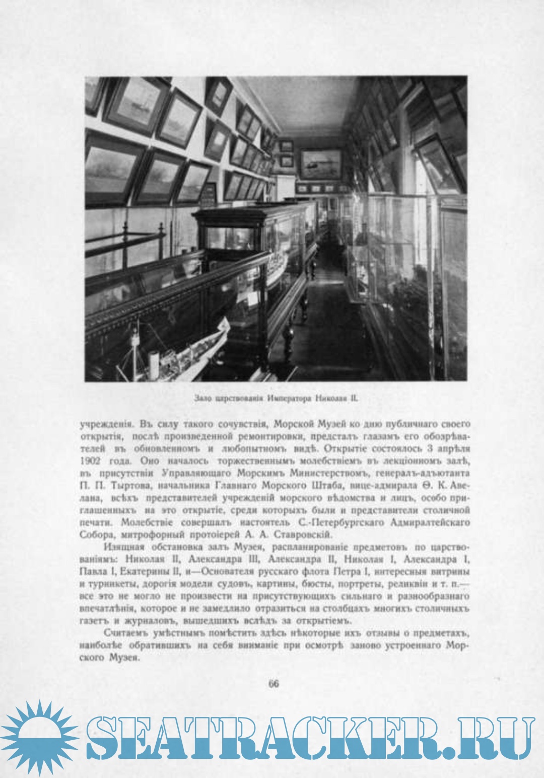 Хотя такое учреждение и специальное, как водим из самого его названия, но в то же время оно обладает в известной степени интересом и не для одних специалистов. Общественная любознательность может найти в нём также немало предметов, способных её заинтересовать, как относящихся непосредственно к морскому делу, так и имеющих к нему известное косвенное отношение.
