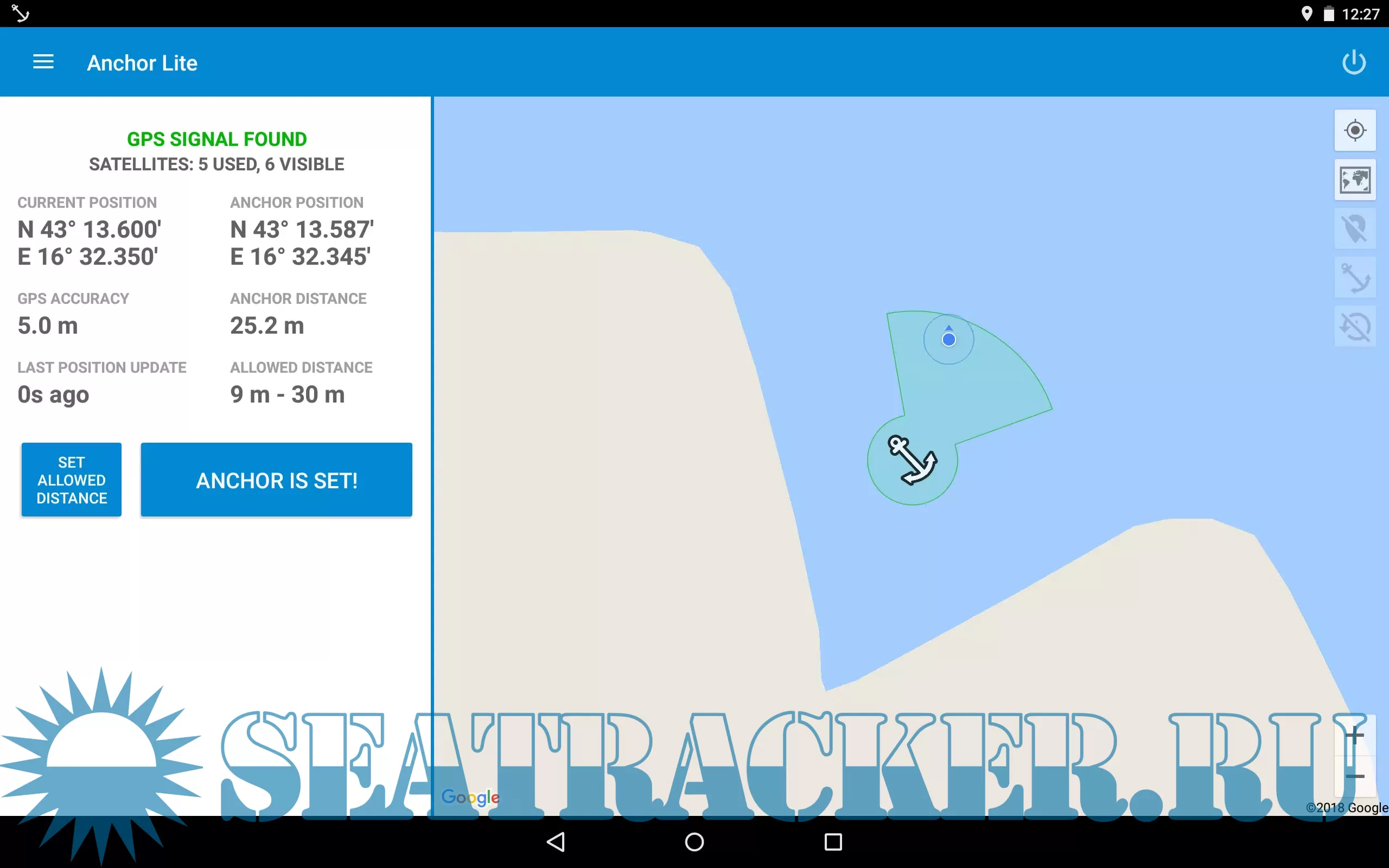 • Uses device's compass to set the anchor even if you are not located directly above it