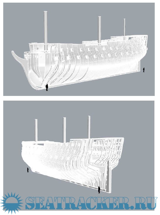 Description: Digital 3D reconstruction of the British 74-gun battleship HMS Colossus based on its original construction drawings.