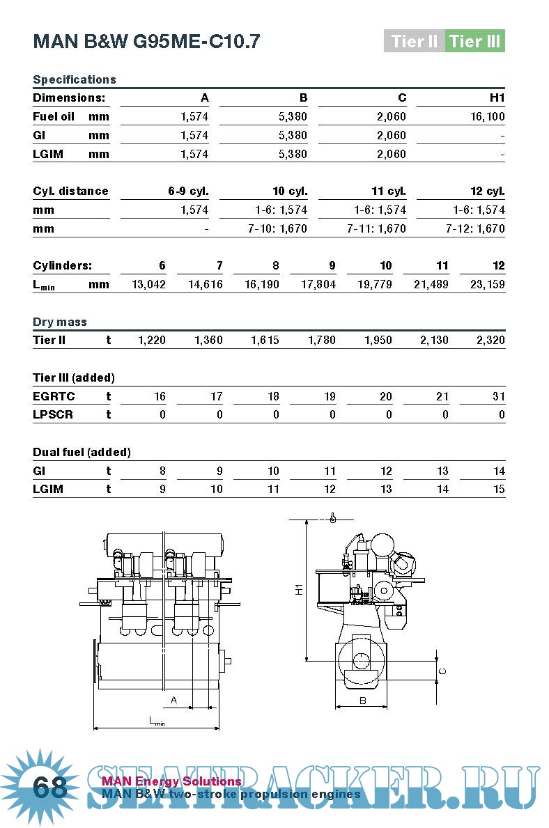 Starting with GenSets of 450 kW output for on-board power, through our four-stroke compact class and on to our giant two-stroke engines – including the largest internal combustion engine on earth with an output of almost 100 MW. The advanced features of our MAN B&W two-stroke engines of the ME generation and the common rail system of our MAN four-stroke engines ensure that we can comply with tomorrow’s emissions regulations today. Hence, in compliance with the IMO Tier II and Tier III emission regulations, two- and four-stroke engines are available in IMO Tier II and Tier III versions which are presented in the Marine Engine Programme
