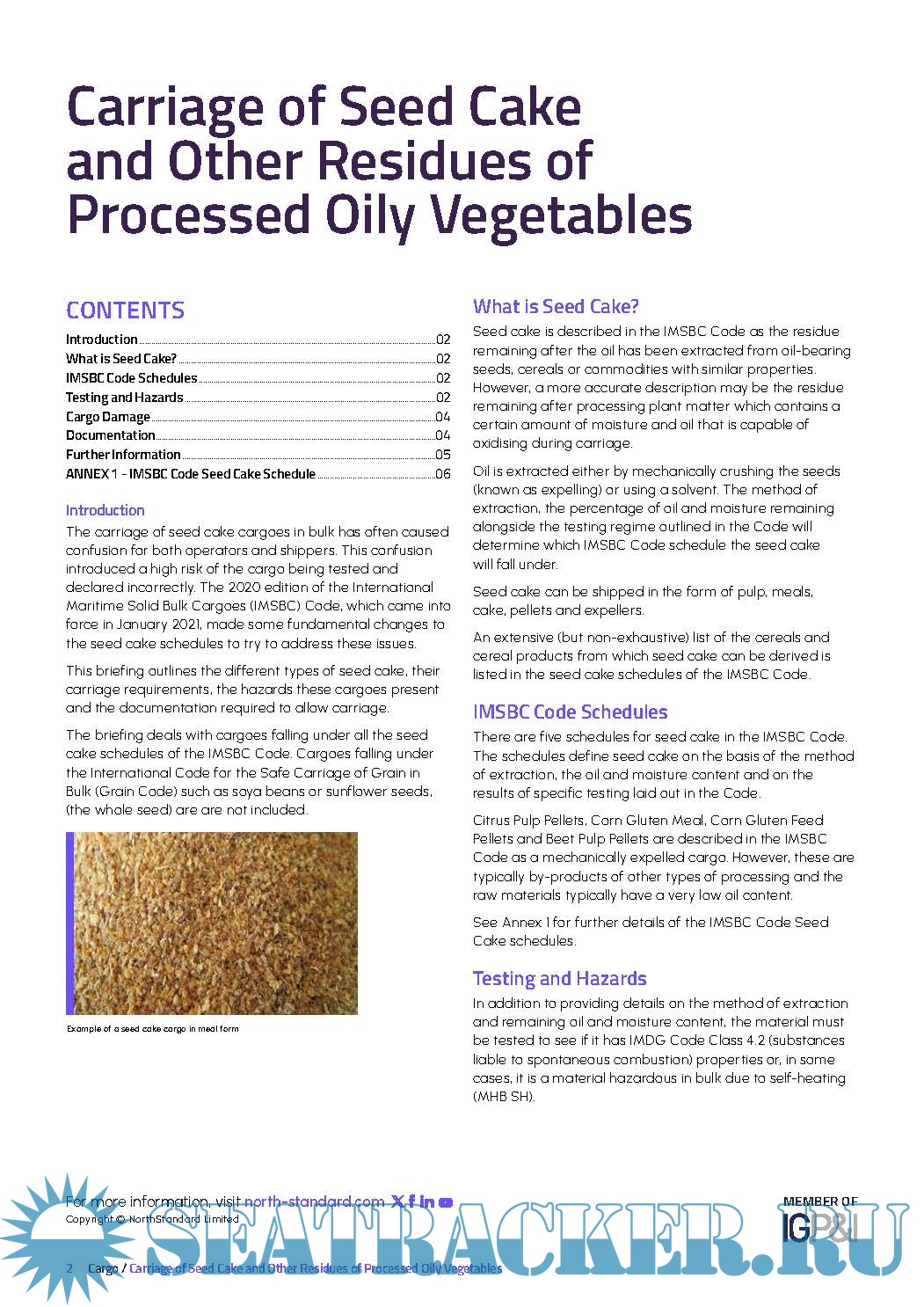 Cargo Care Checklist: Seed Cake [updated] - NorthStandard [2024, PDF]