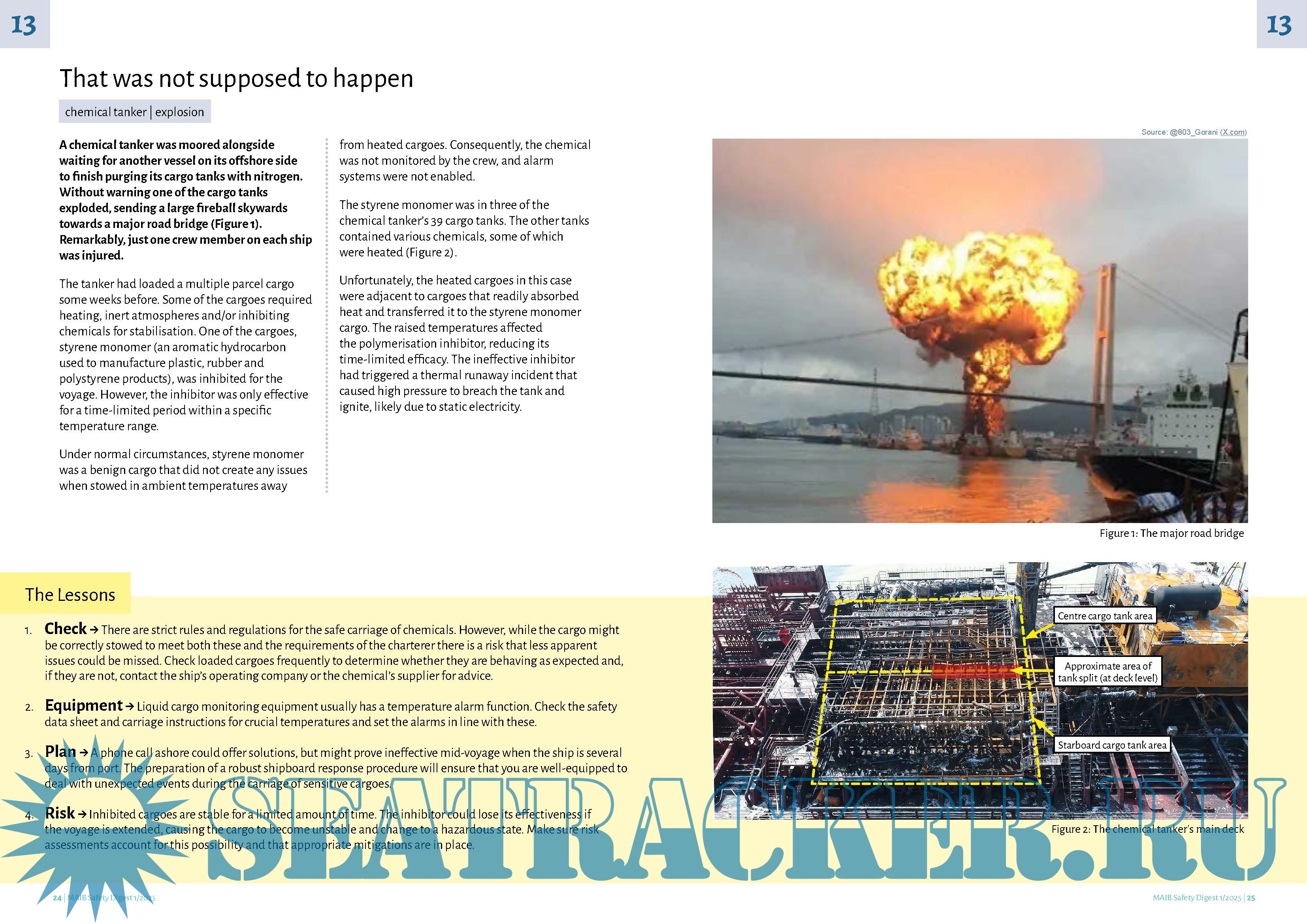 This information is published to inform the merchant and fishing industries, the recreational craft community and the public of the general circumstances of marine accidents and to draw out the lessons to be learned. The sole purpose of the safety digest is to prevent similar accidents happening again. The content must necessarily be regarded as tentative and subject to alteration or correction if additional evidence becomes available.
