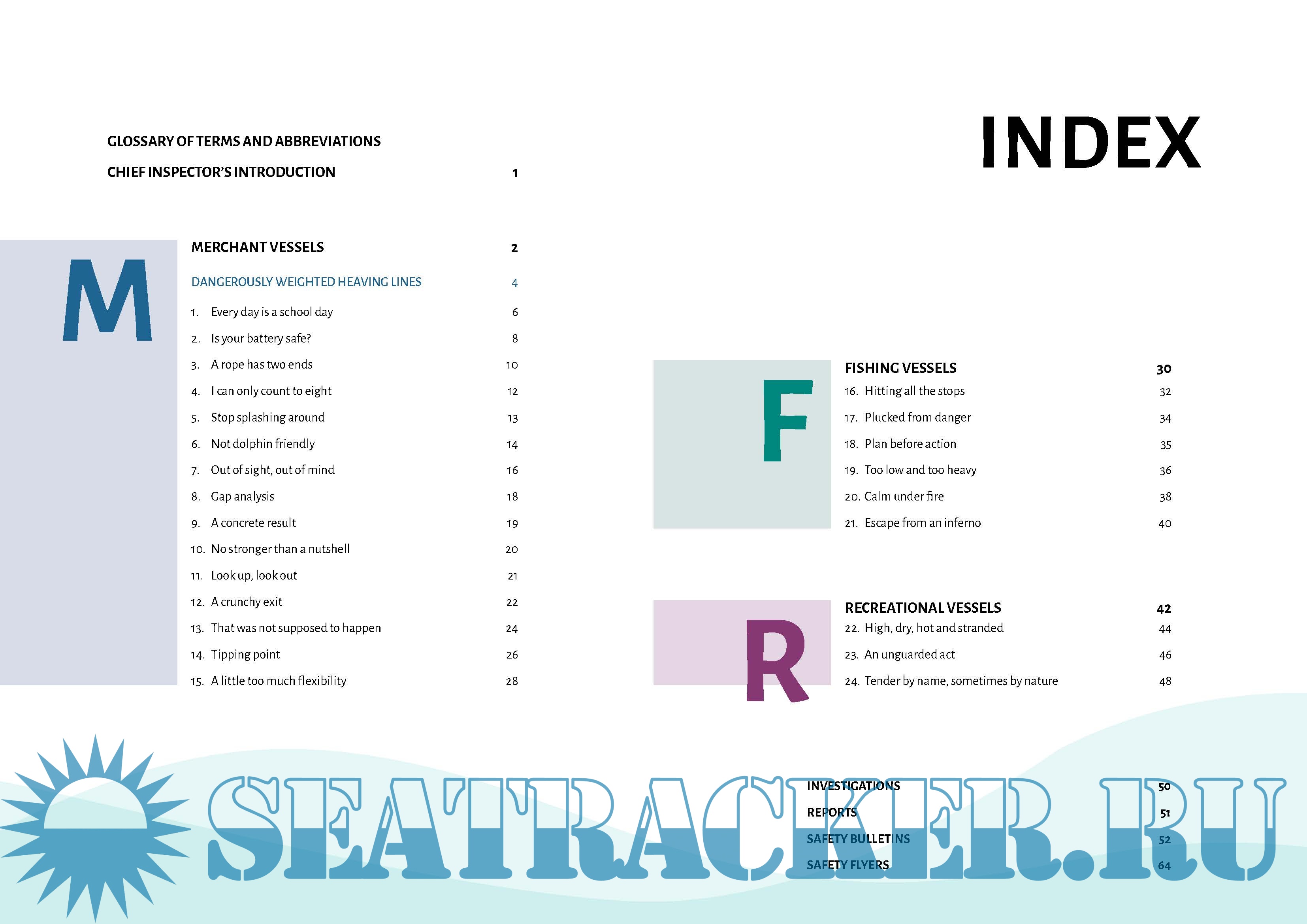 This safety digest draws the attention of the marine community to some of the lessons arising from investigations into recent accidents and incidents. It contains information that has been determined up to the time of issue. Safety digests are collections of articles involving vessels from the merchant, fishing and small craft sectors to help the marine community to learn lessons arising from a variety of accidents.