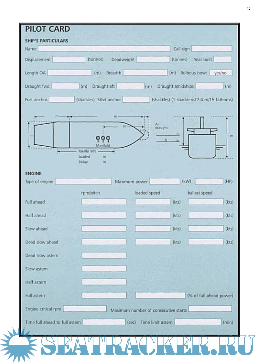 Описание: Этот документ содержит требование относительно управления командой мостика BRIDGE TEAM MANAGEMENT (Организация ходовой навигационной вахты), т.е. подготовки судна к плаванию в стесненных водах, входу и выходу из порта с заполнением “Pilot Card”, “Check List”, подготовки плана перехода судна с заполнением “Voyage Plan”, подготовки судна и экипажа к действиям в экстремальных условиях, с записями в судовом журнале и весь ряд требований, предъявляемых к судам и сертификации судоводителей согласно раздела A-II/2 Конвенции ПДМНВ-78/95.
