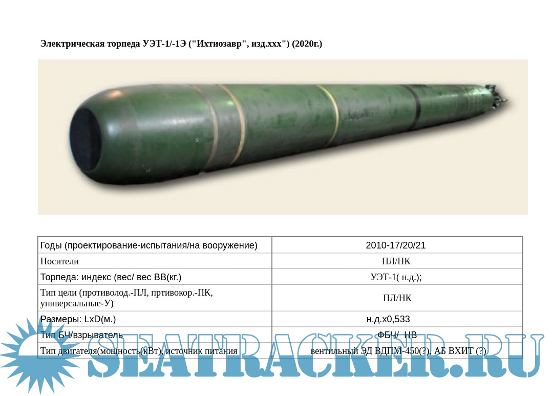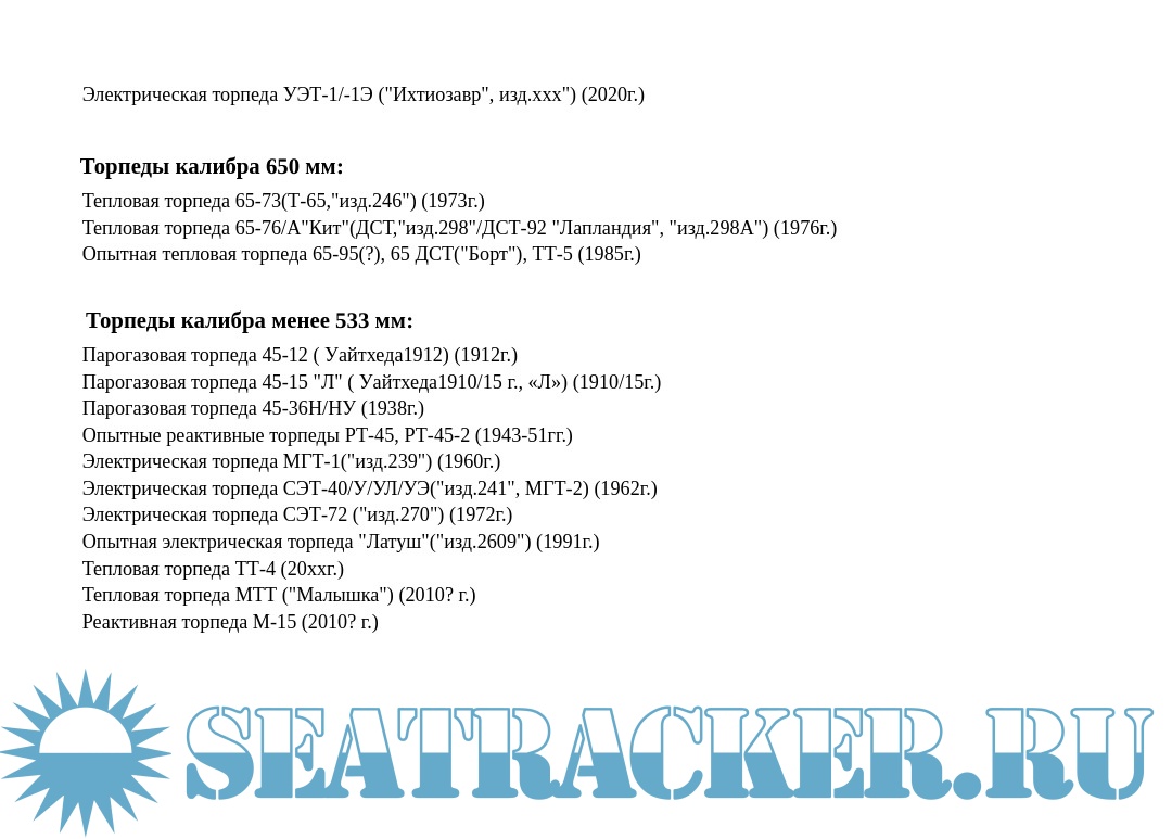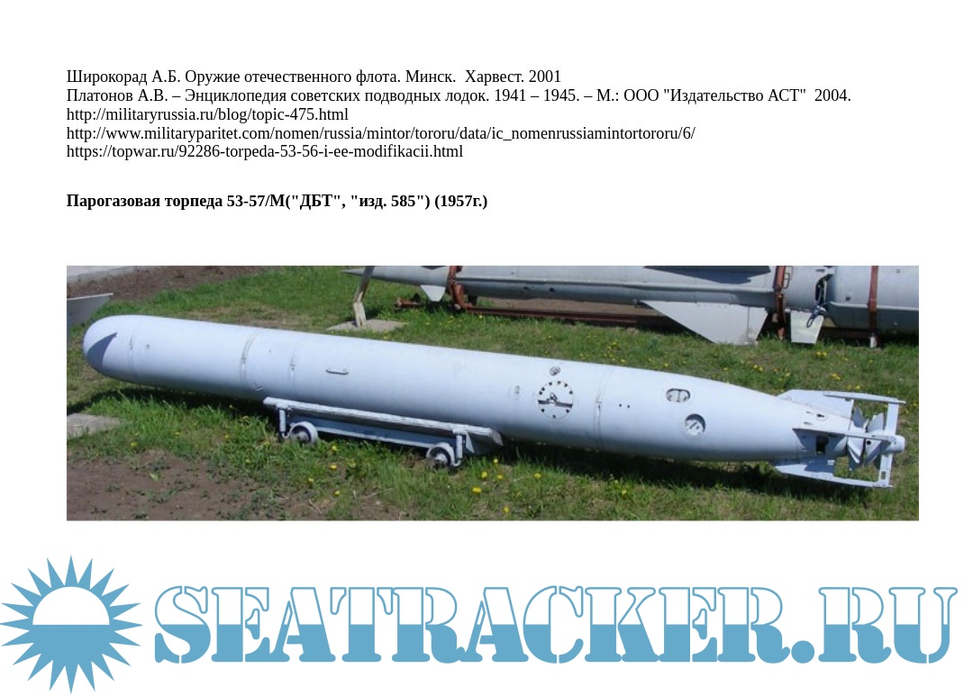 Описание: Приведены ТТХ, общие виды и краткое описание конструкции торпед СССР и России.
