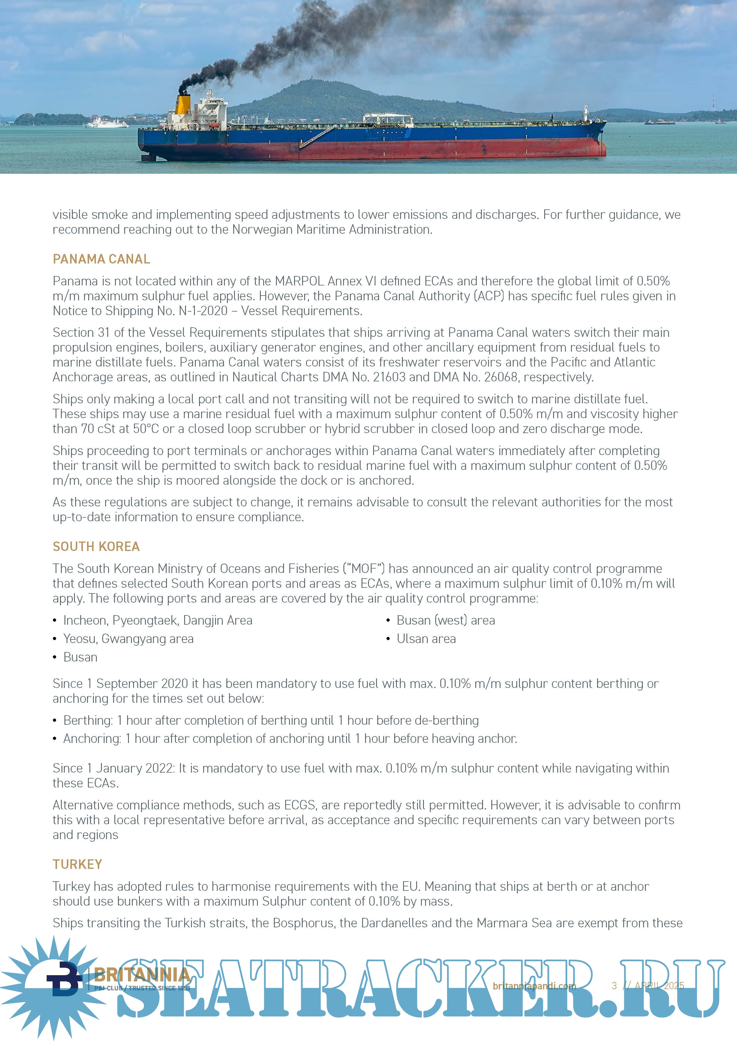 For the Mediterranean Sea, the requirement to use fuel with a 0.10% m/m sulphur content limit will come into force on 1 May 2025, following the 12-month exemption period as per MARPOL Annex VI, Regulation 14.7.
