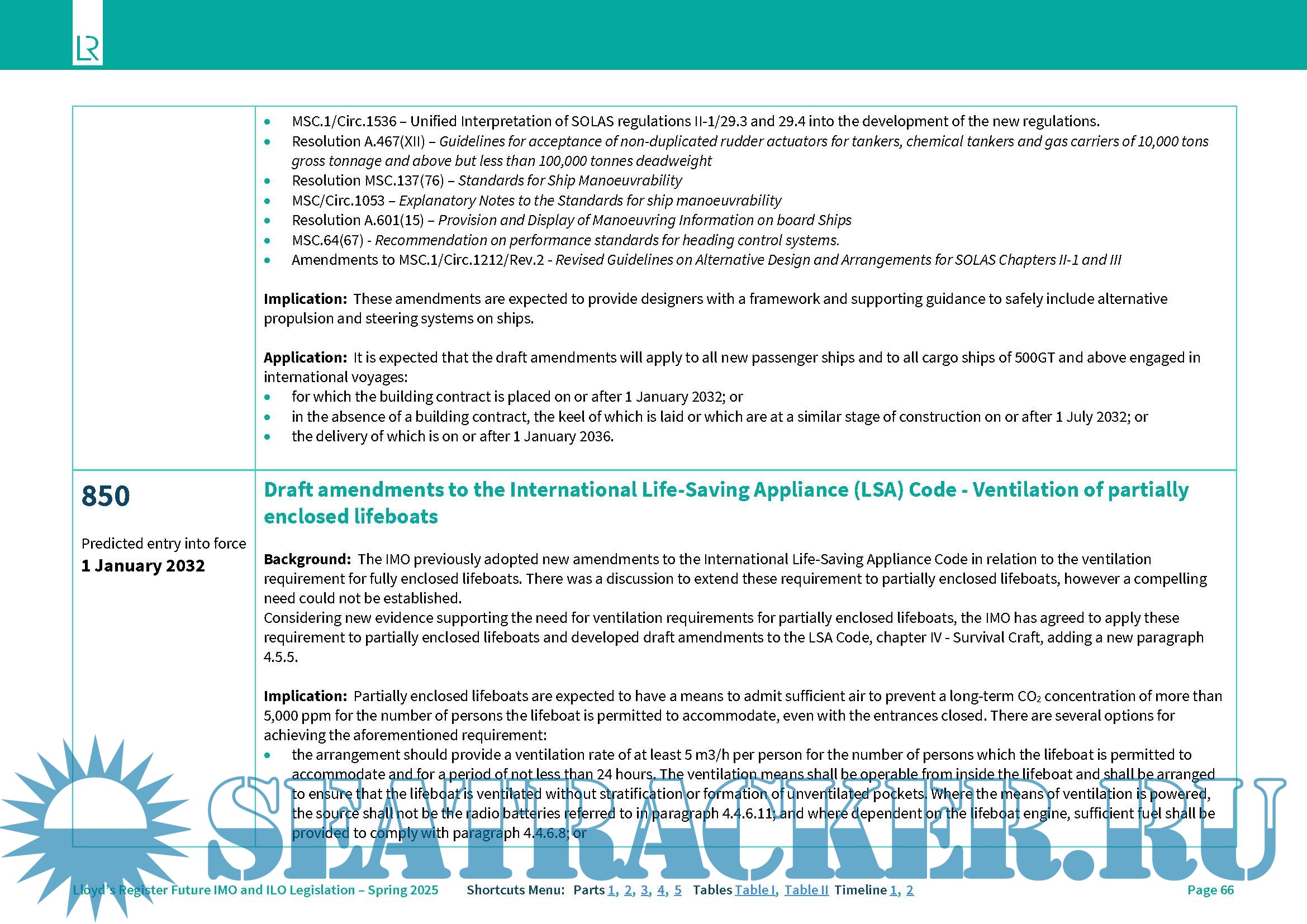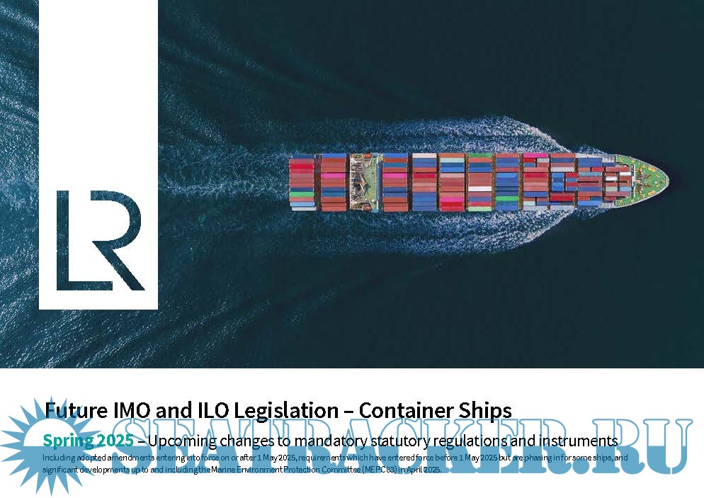 Year: 2025 Language: English Author: Lloyd's Register Genre: Textbook Publisher: Lloyd's Register Edition: Spring 2025 edition Format: PDF Quality: eBook Pages count: Multiple Description: Future IMO and ILO Legislation additional New documents for specific ship types. Upcoming changes to mandatory statutory regulations and instruments Including adopted amendments entering into force on or after 1 May 2025, requirements which have entered force before 1 May 2025 but are phasing in for some ships, and significant developments up to and including the Marine Environment Protection Committee (MEPC 83) in April 2025. For specific ship types: – Passenger and Ro-Ro Passenger Ships – Oil and Chemical Tankers – Gas Carriers – Bulk Carriers – Container Ships – General Cargo Ships – Yachts
