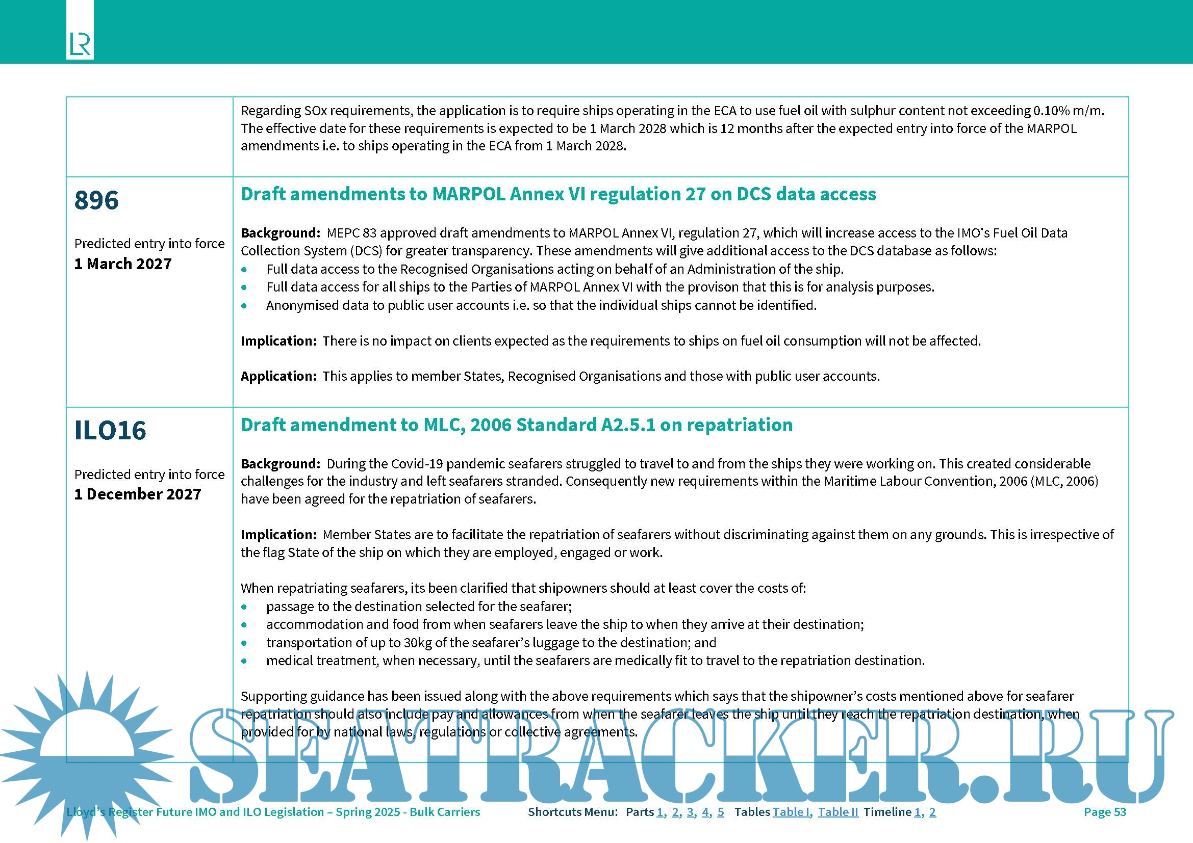 Description: Future IMO and ILO Legislation additional New documents for specific ship types.