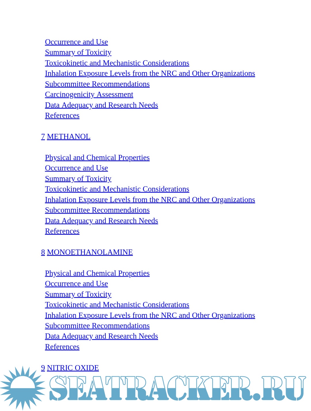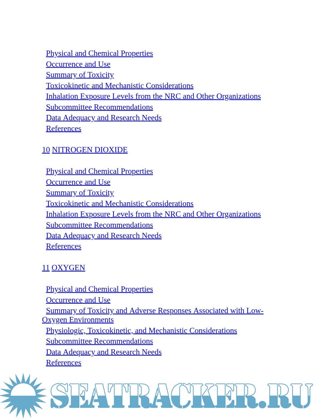 Description: U.S. Navy personnel who work on submarines are in an enclosed and isolated environment for days or weeks at a time when at sea. Unlike a typical work environment, they are potentially exposed to air contaminants 24 hours a day. To protect workers from potential adverse health effects due to those conditions, the U.S. Navy has established exposure guidance levels for a number of contaminants. The Navy asked a subcommittee of the National Research Council (NRC) to review, and develop when necessary, exposure guidance levels for 10 contaminants.
