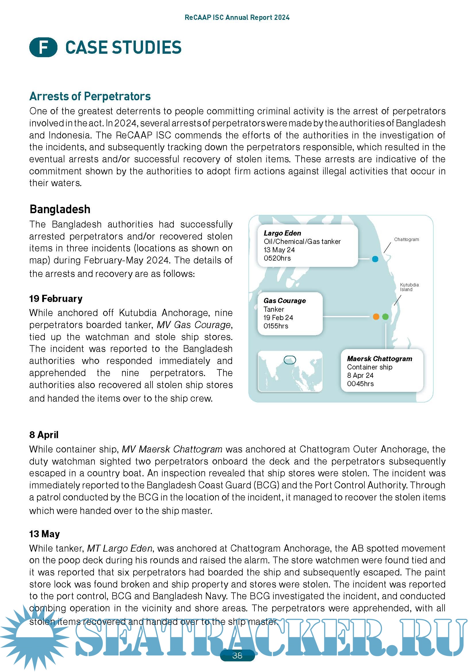 As part of the Centre’s continuous efforts to ensure that the evolving needs of the shipping industry aremet, ReCAAP ISC launched various initiatives in 2024, to keep the shipping community abreast of the latestpiracy and ARAS situation in Asia and to facilitate ship masters in the timely reporting of incidents to thenearest coastal State.