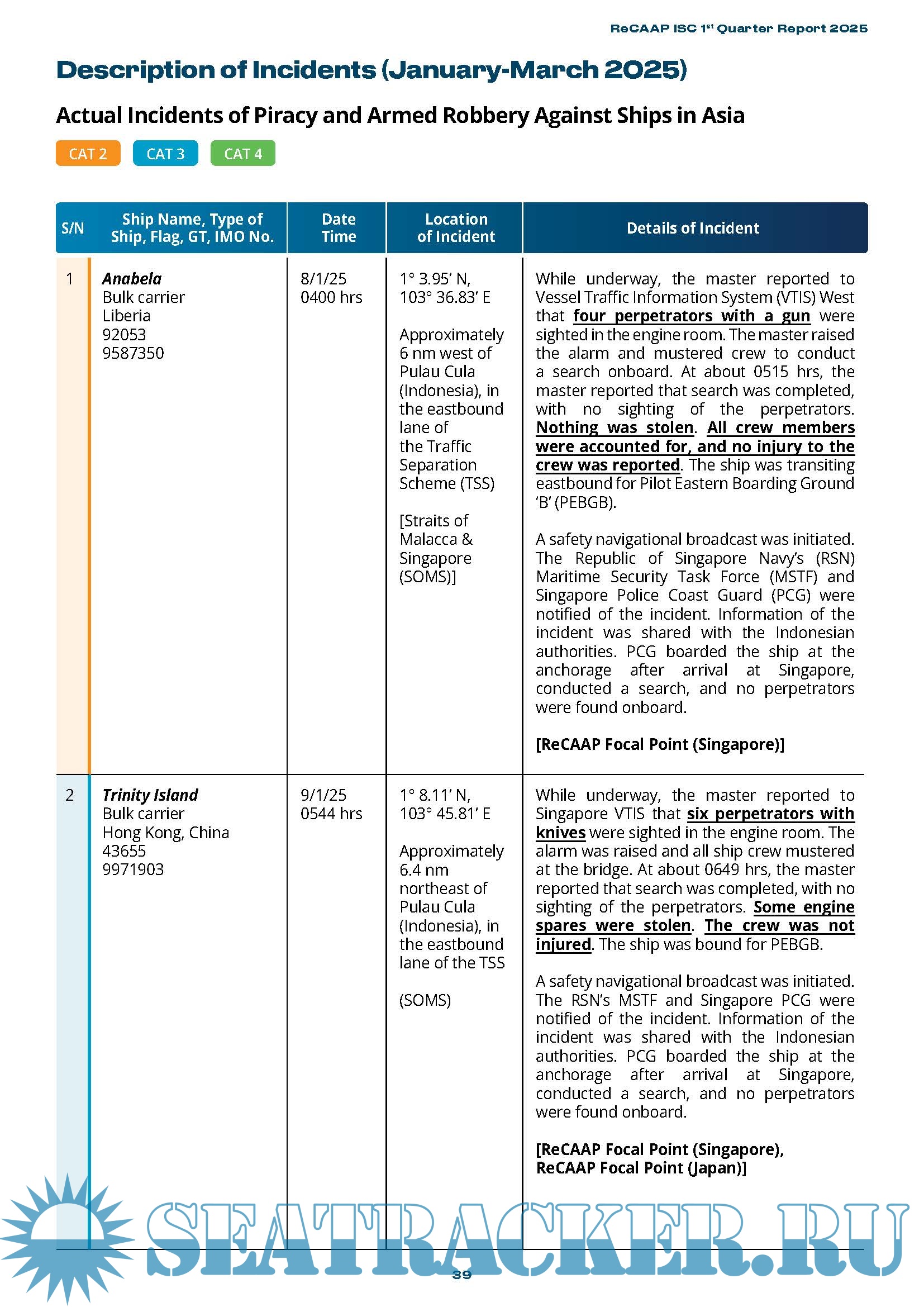 ReCAAP ISC 1st Quarter Report | Piracy and Armed robbery against ships in Asia